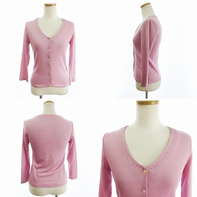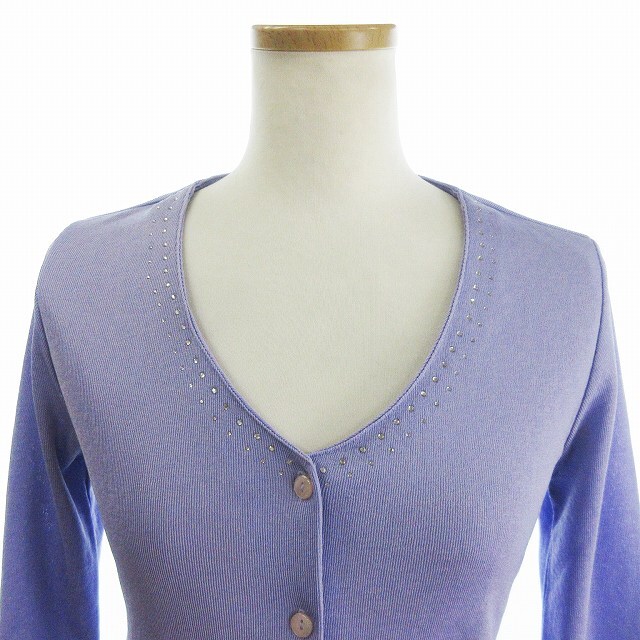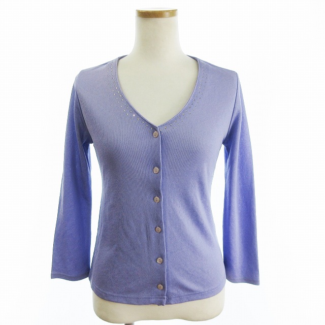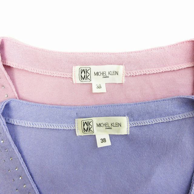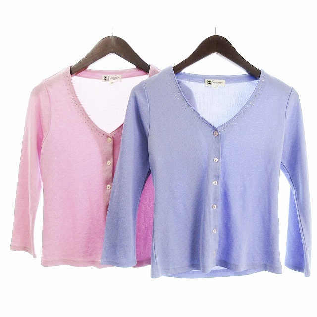 ミッシェルクラン MICHEL KLEIN 2点 セット カーディガン 七分袖 Vネック 装飾 紫 ピンク パープル 38 レディース