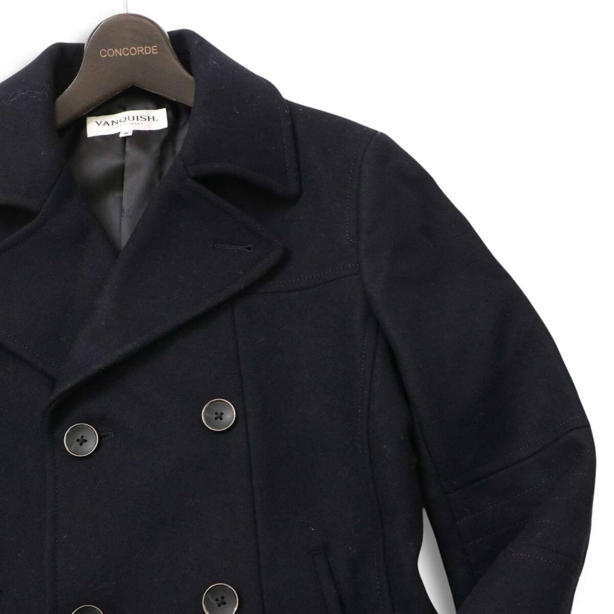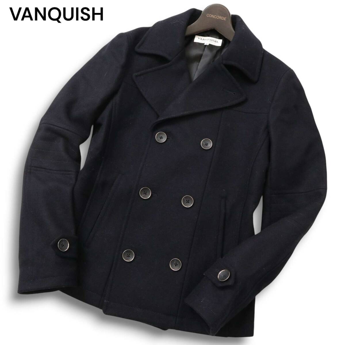 VANQUISH ヴァンキッシュ 秋冬 メルトン ウール★ Pコート Sz.S メンズ ネイビー