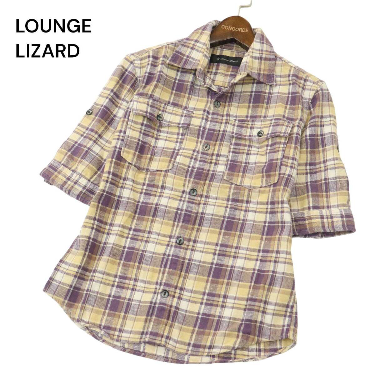 LOUNGE LIZARD ラウンジリザード 春夏★ 半袖 ワーク チェック ネル シャツ Sz.1 メンズ 日本製