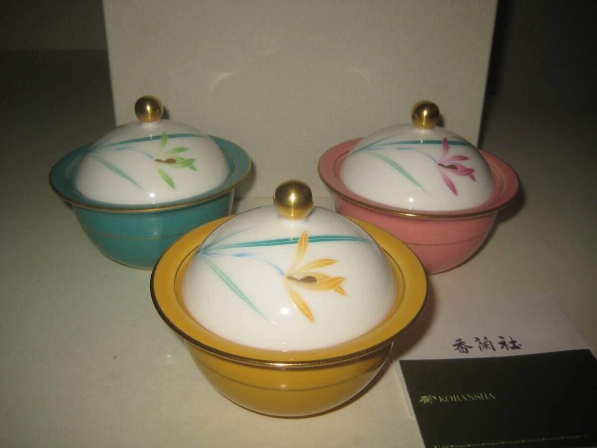 香蘭社 蓋物 三色 セット オーキッドガーデン ボンボニエール 箱付 キャンディポット 小鉢 ボンボン 小物入