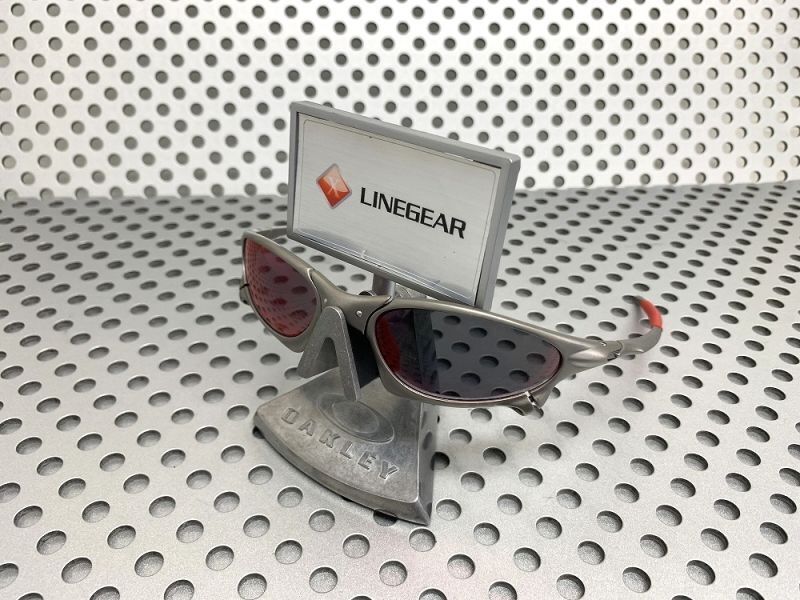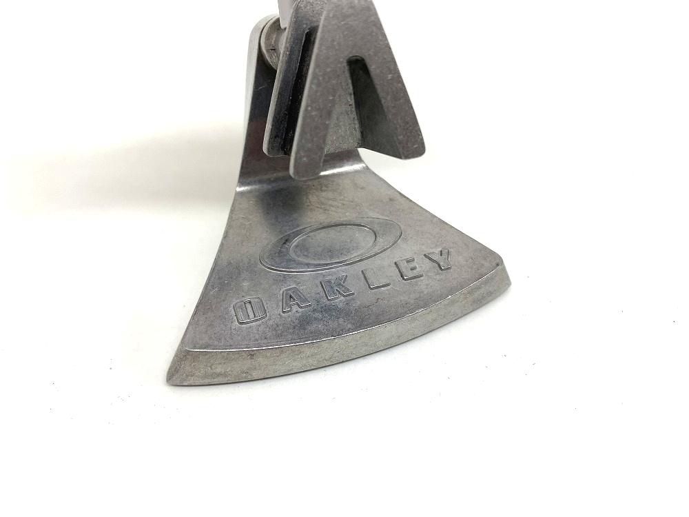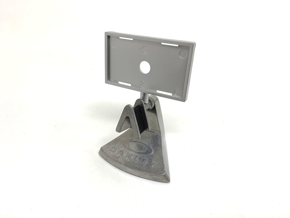 【未使用品】オークリー アルミ製 ディスプレイスタンド 1段倉庫保管の未使用品となります。カードディスプレイ(プラスチック)付き、取り外し可能です。※未使用ですが、usedのような風合いの仕上げになっています。※画像上のサングラスフレームは付属しません。