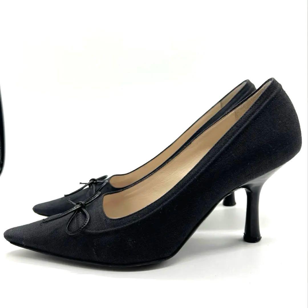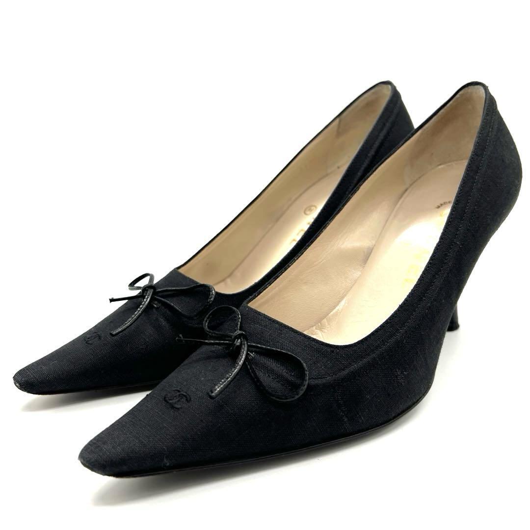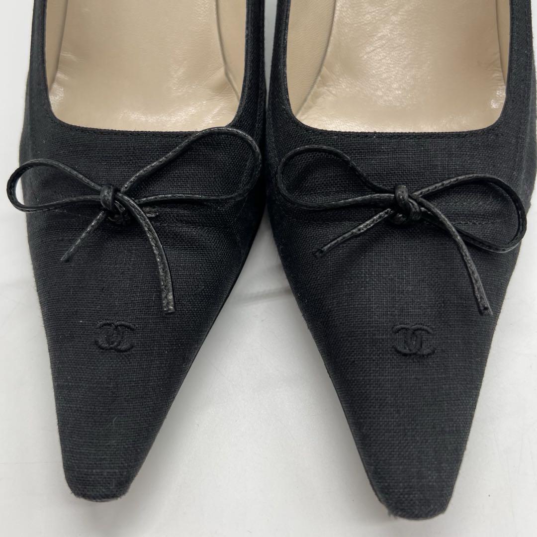 CHANEL シャネル ハイヒールパンプス ココマーク リボン キャンバス ブラック