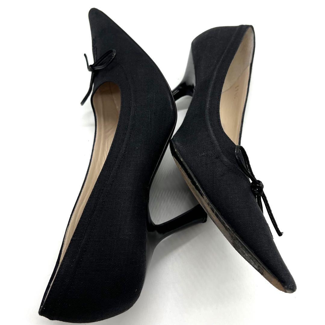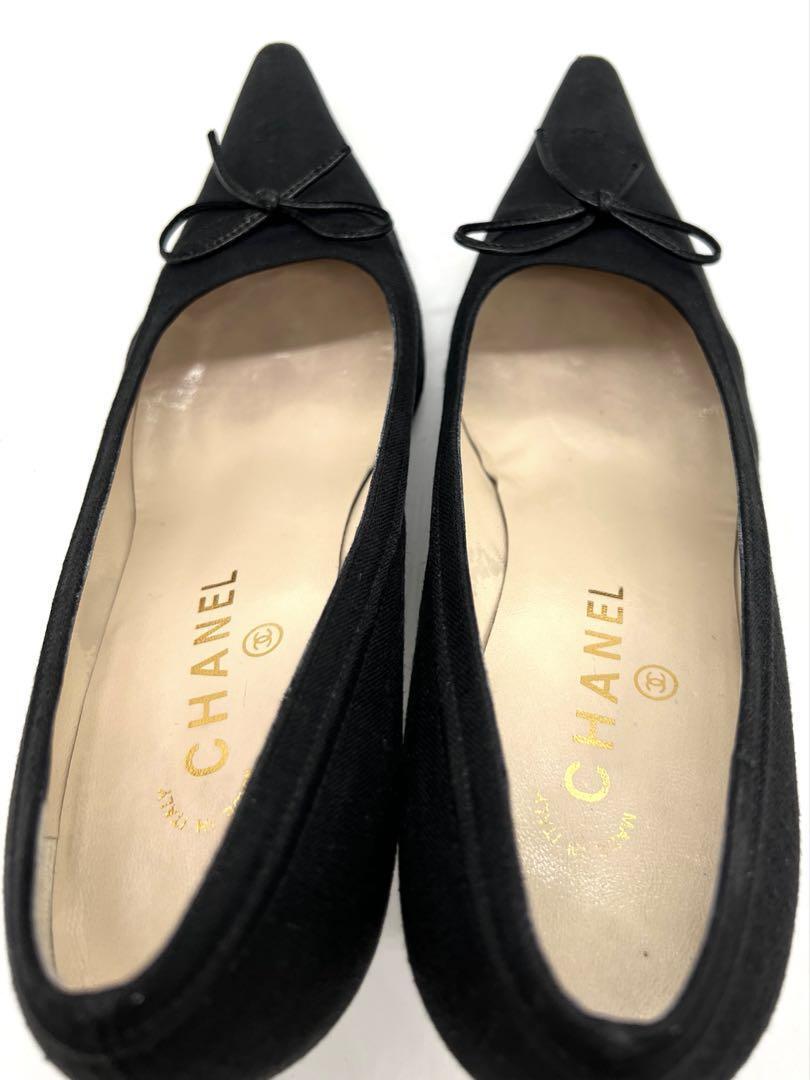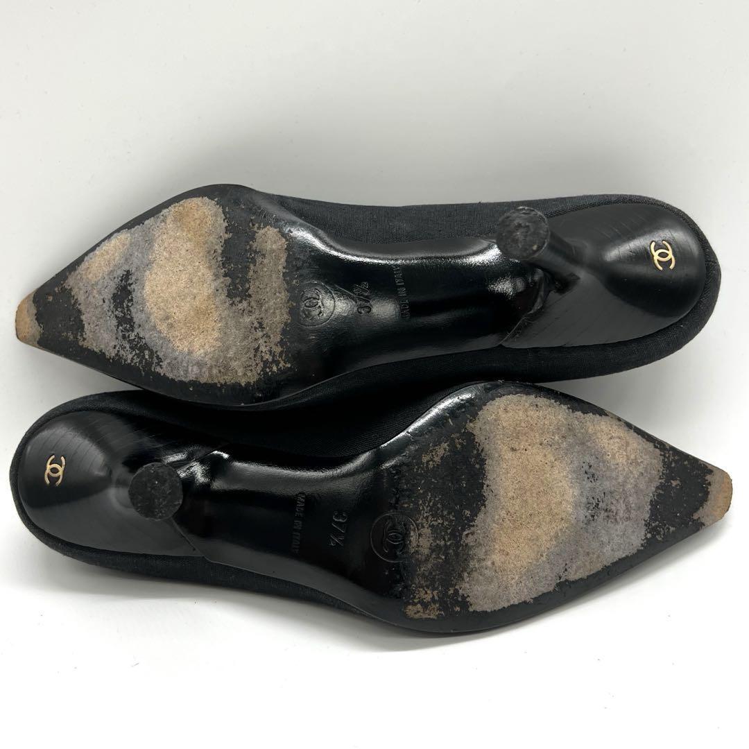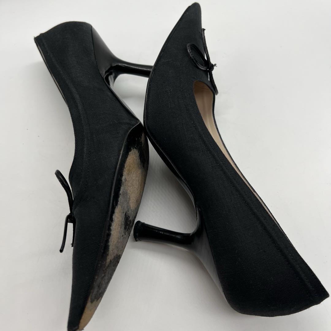 CHANEL シャネル ハイヒールパンプス ココマーク リボン キャンバス ブラック