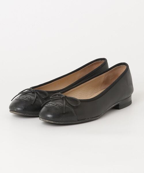 「CHANEL」 ココマーク フラットパンプス 34 ブラック レディース