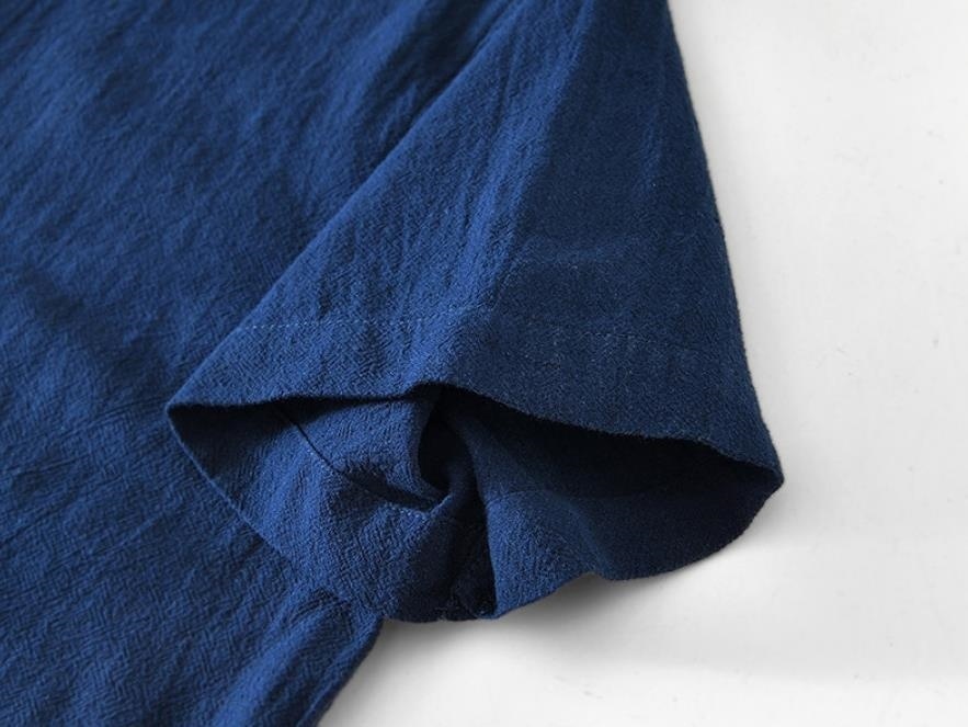 夏新品 リネンシャツ メンズ カジュアル 立ち襟 半袖シャツ プルオーバー ヘンリーネック シンプル 夏服 トップス【L152】ネイビー 2XL