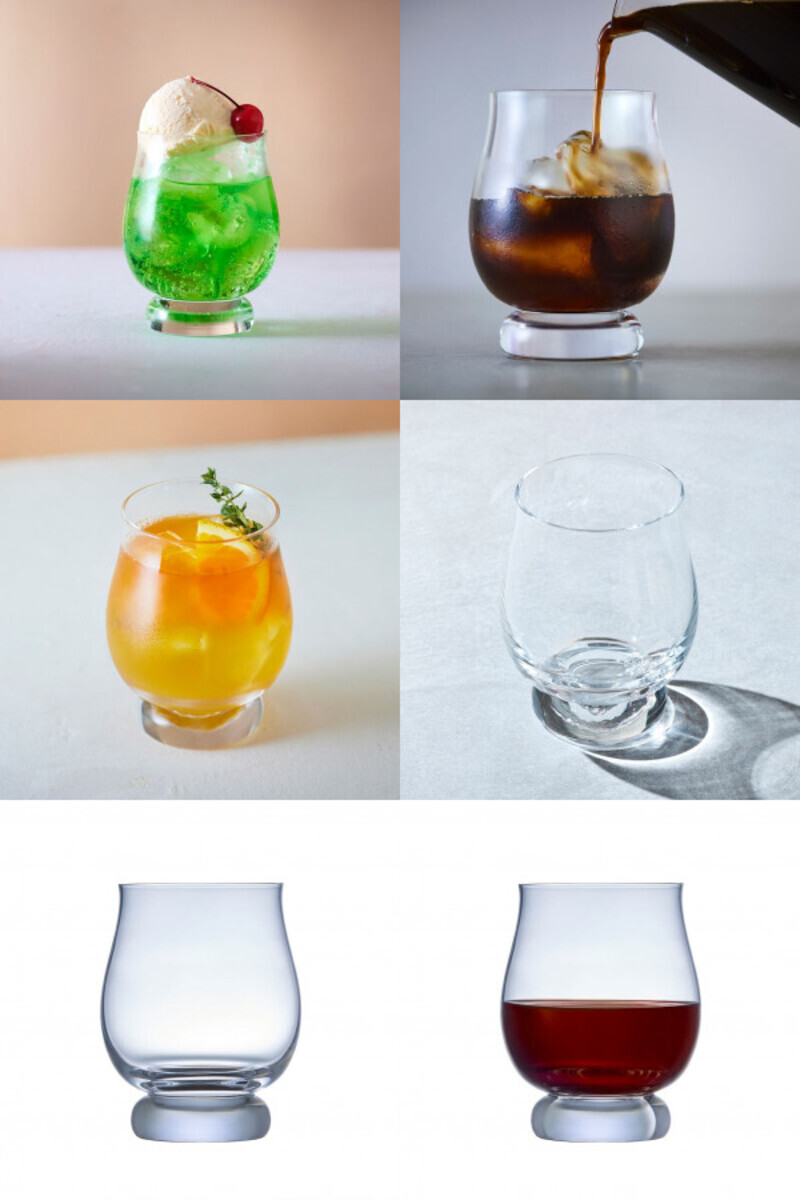 ガラス溜まりに鎮座するころんとまあるいフォルムが特徴のfuwariグラス 360ml。 グラスの曲線と台座のくびれに指がかかりやすく、重心の低い安定感ある柔らかなフォルムはしっくりと手に馴染みます。シンプルながらさりげなく個性が滲じむ佇まいは日常でも扱いやすく、特別な一杯はもちろん毎日の食卓に欠かせない存在に。 口もとにグラスを傾けると包み込まれた芳香がふわりと香りたち、味覚と嗅覚で味わう至福の一杯に。 |