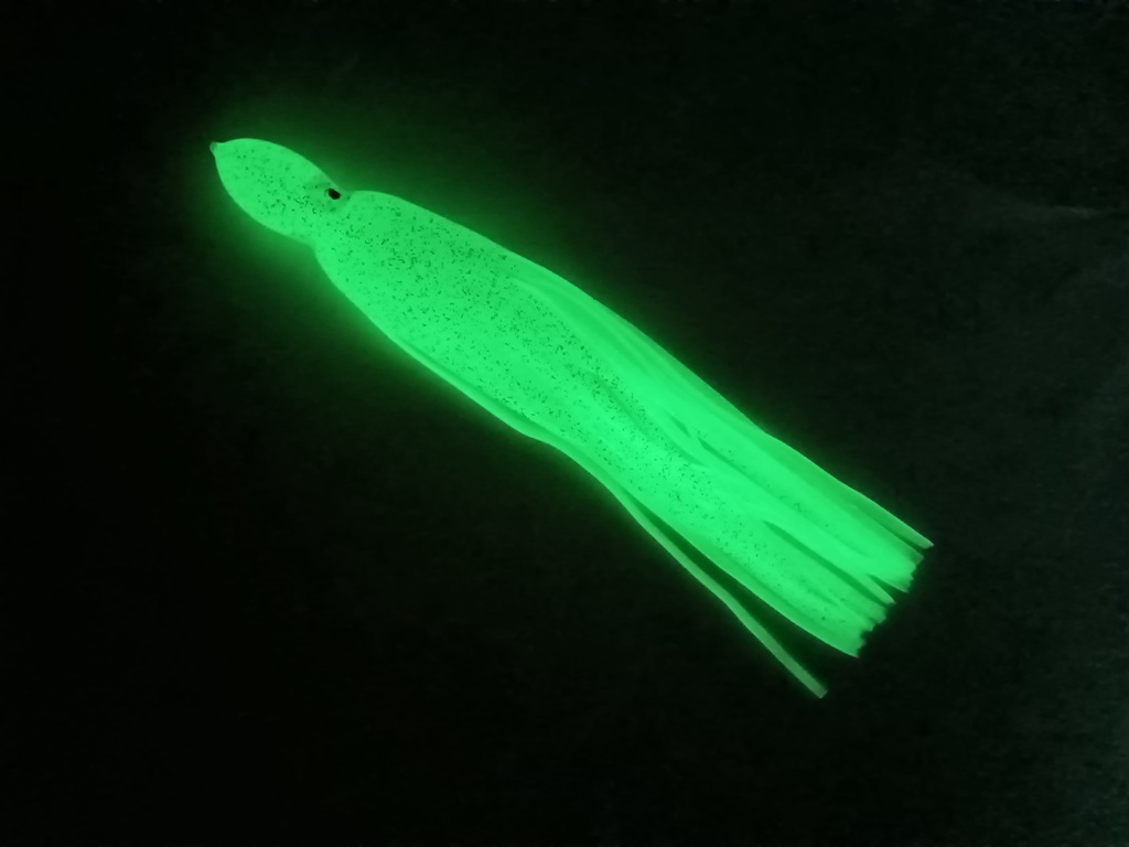 光を当てると暗がりで発光する夜光タイプのタコベイトになります。