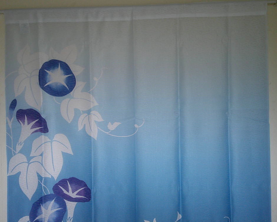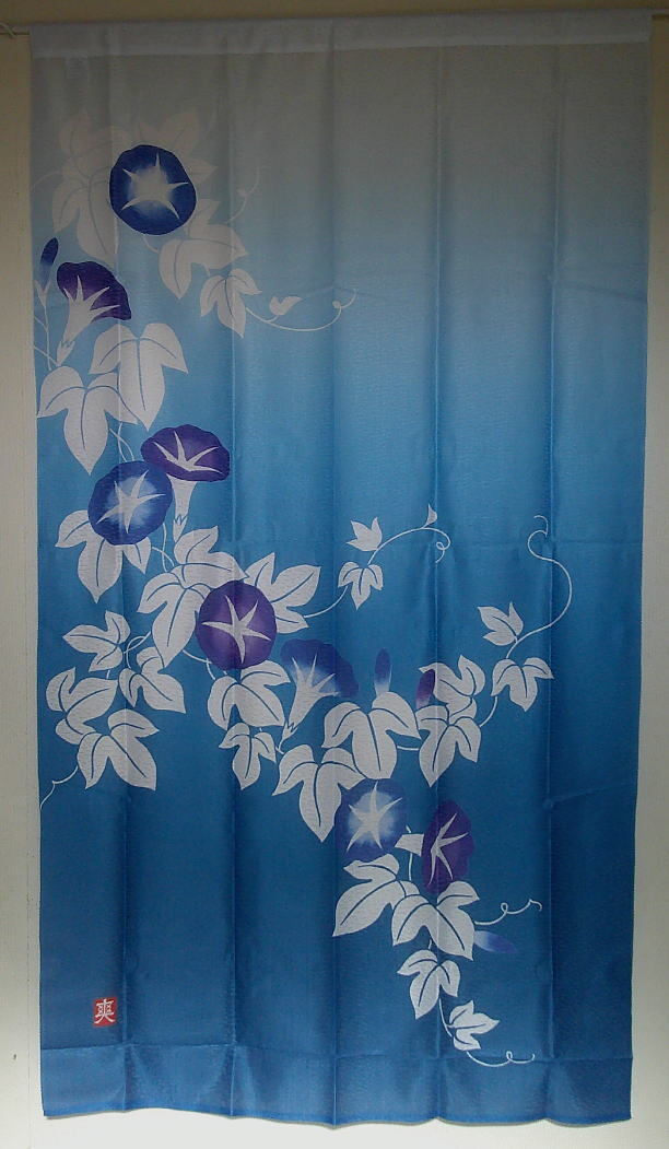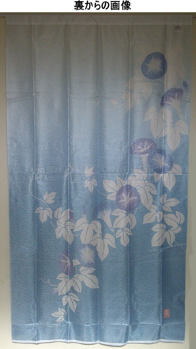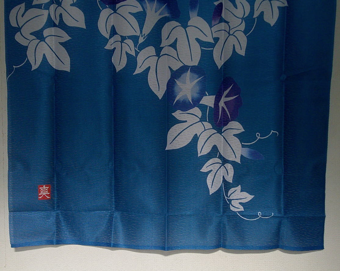 夏のれん85×150cmレースプリントのれん藍の朝顔-ブルー【和風のれん】yuni-92303