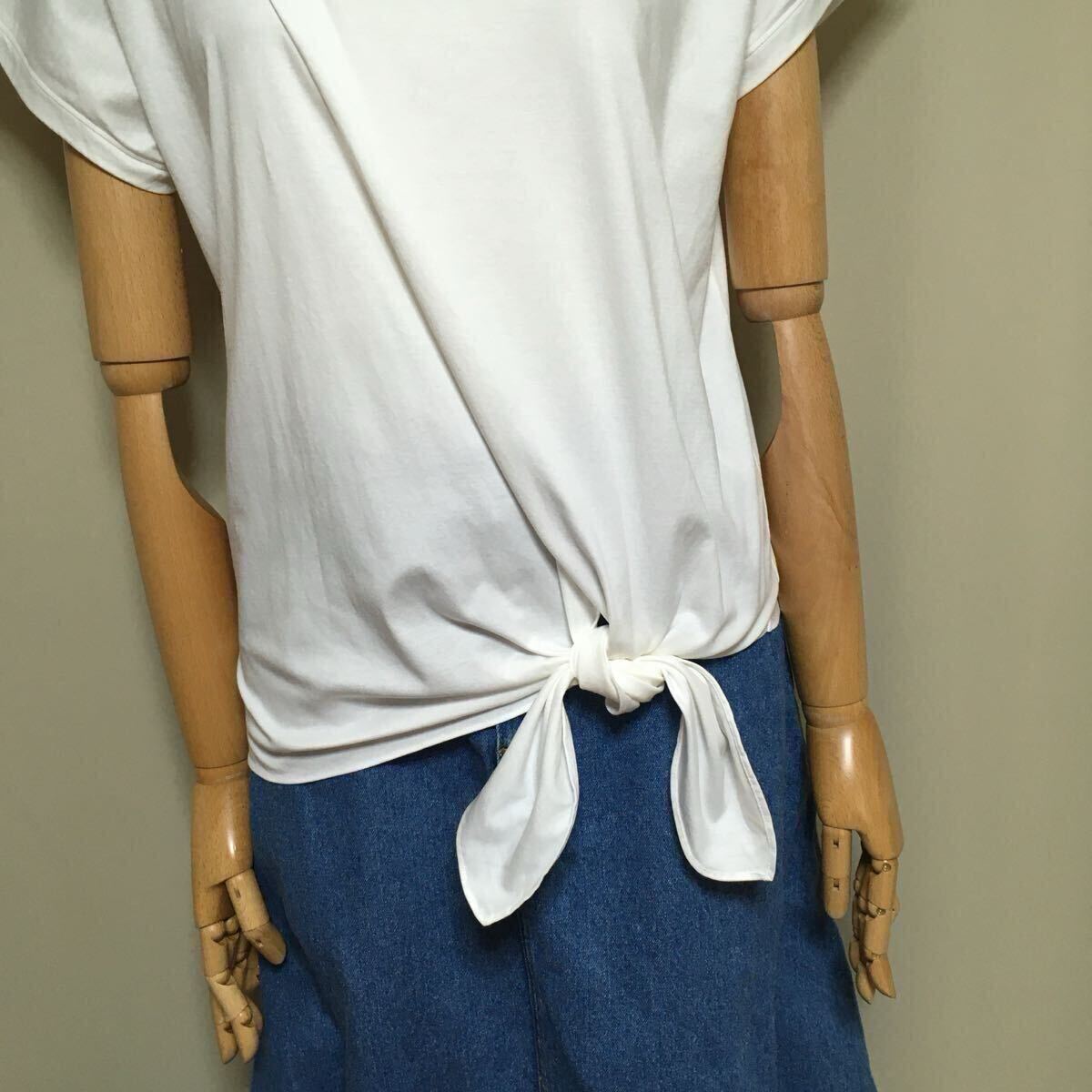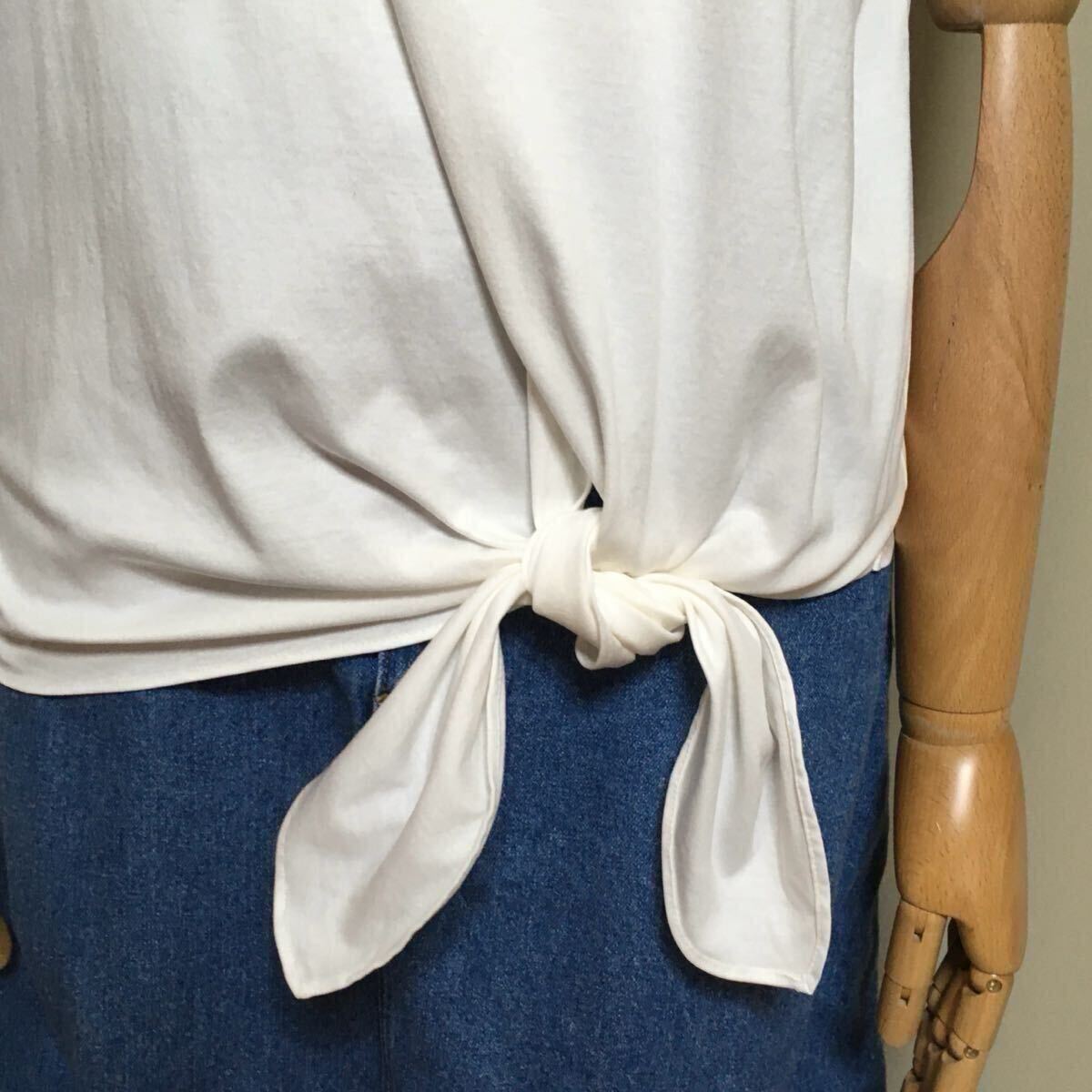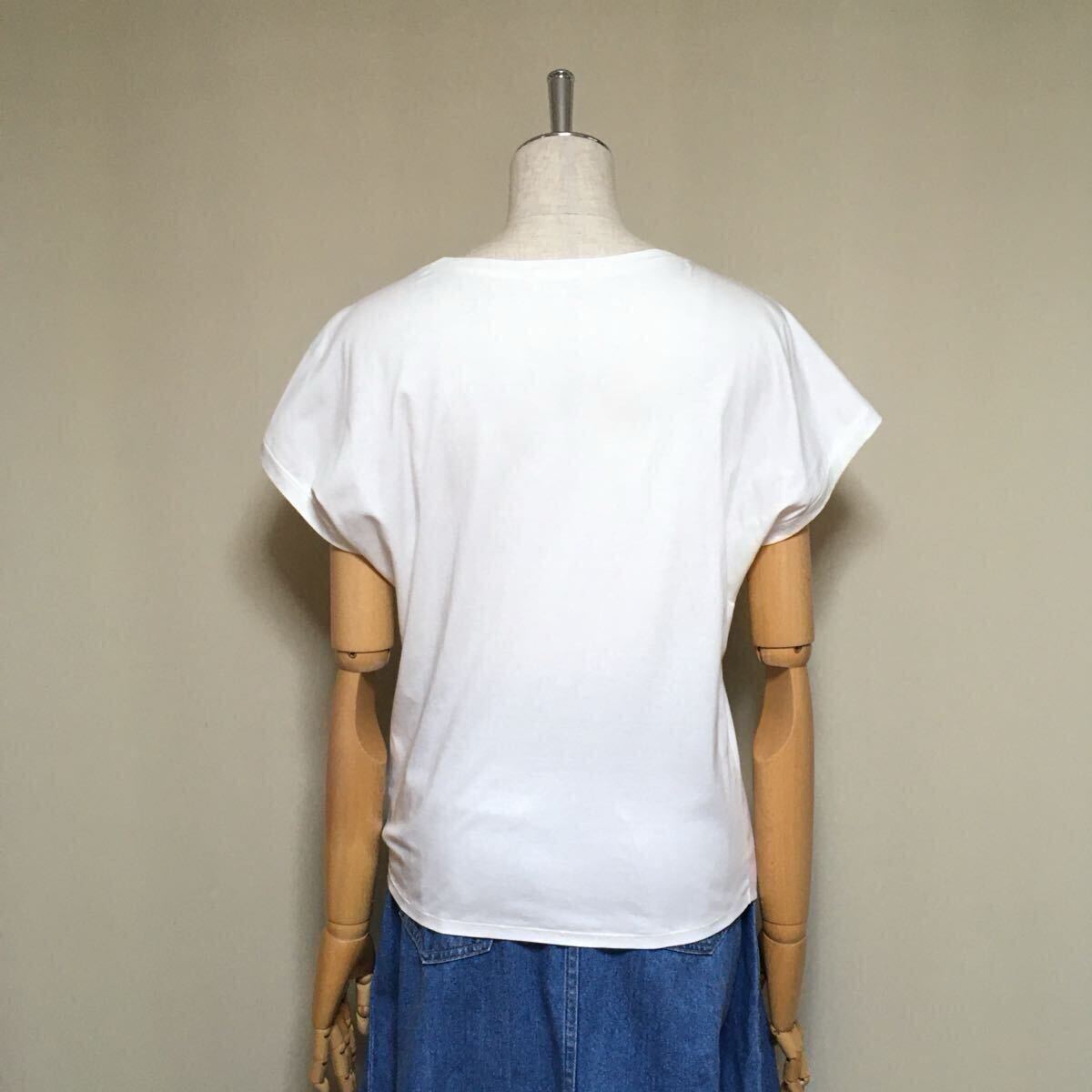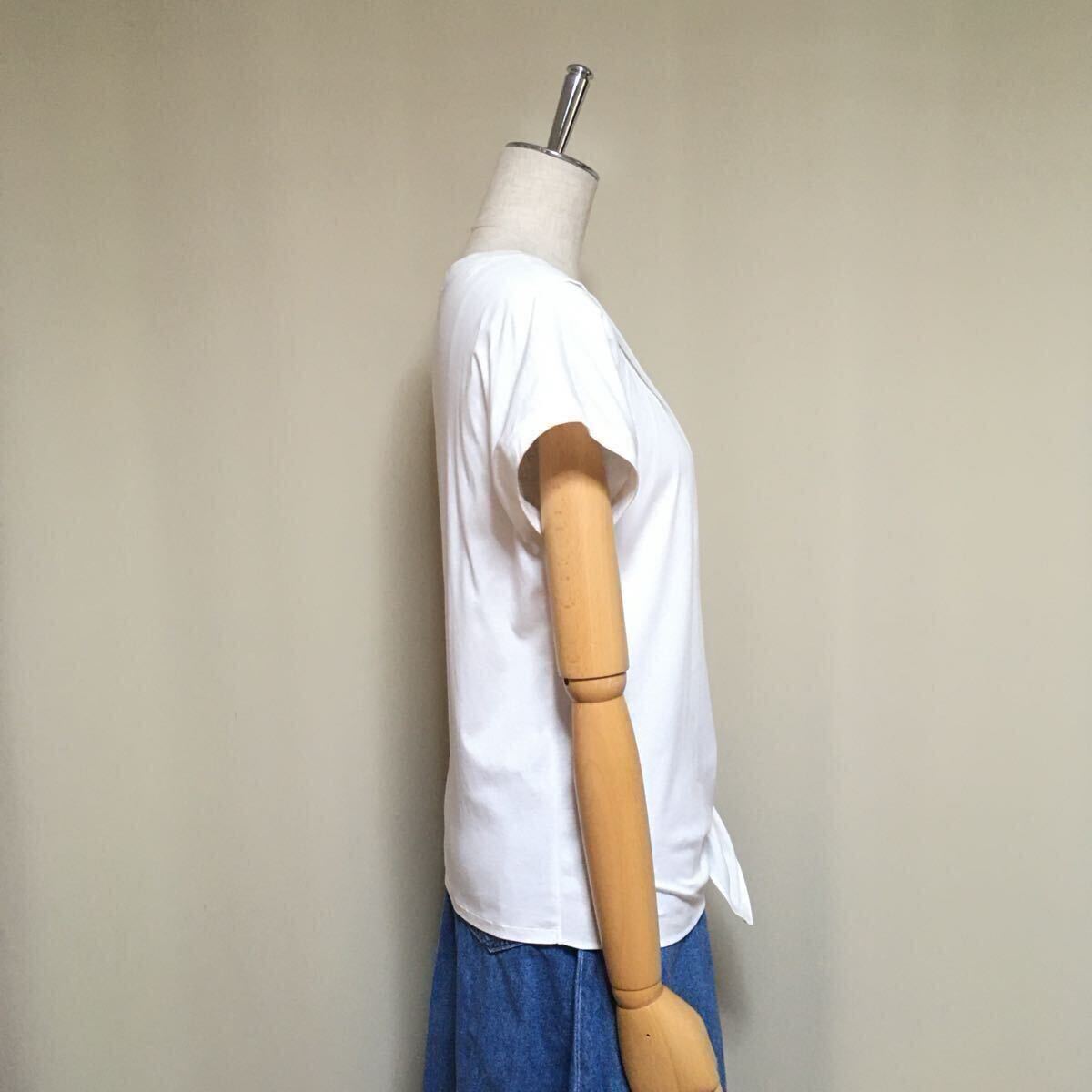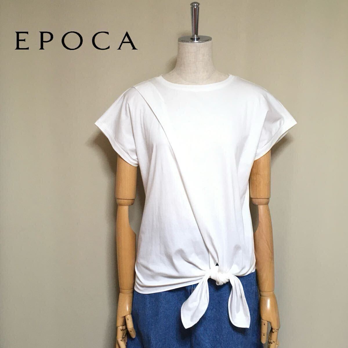 【美品】EPOCA エポカ 洗える 裾リボン フレンチスリーブ 半袖カットソー Tシャツ 40/Mサイズ相当 ホワイト レディース トップス 日本製