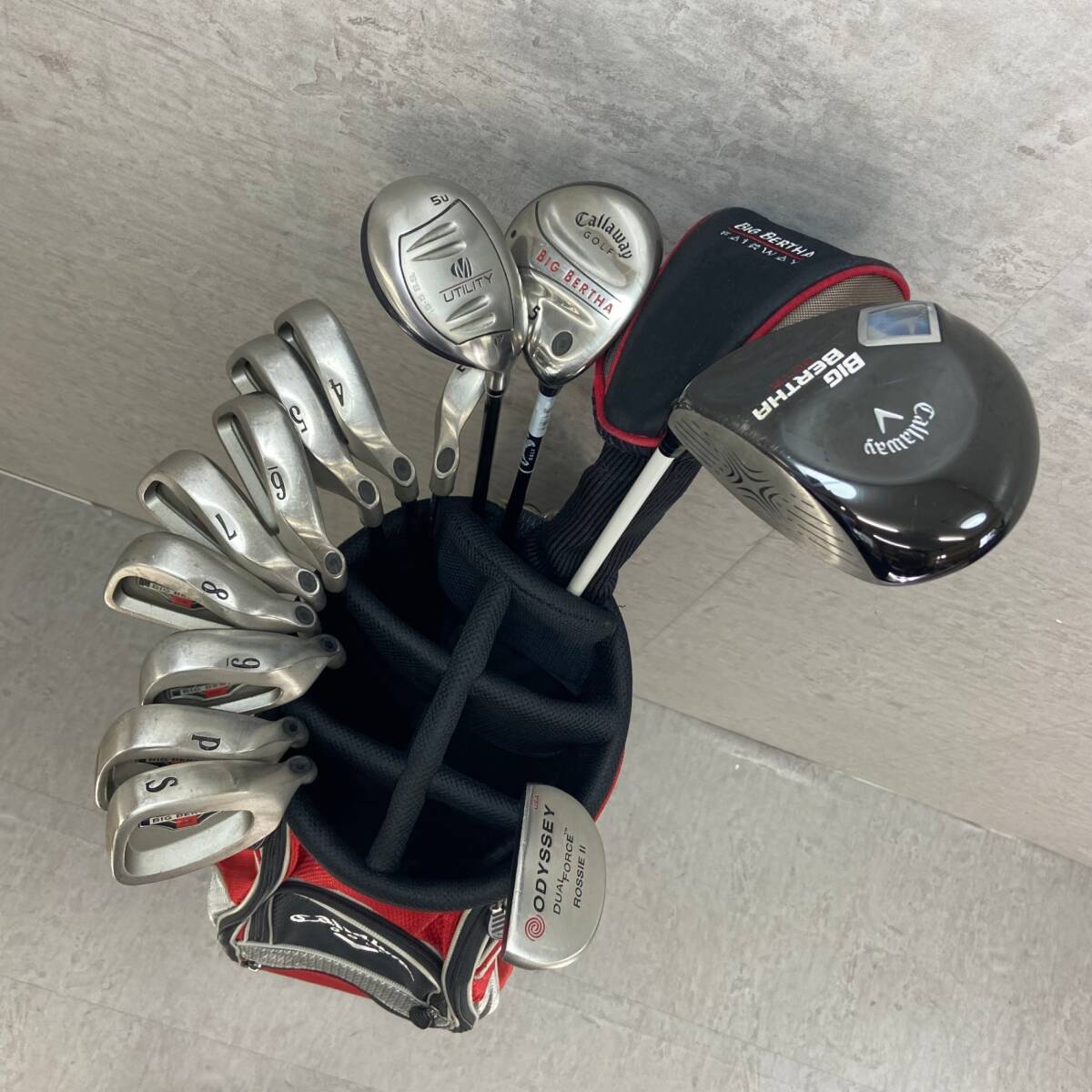 | 商品説明 | 商品をご覧頂きありがとうございます。 ブランド Callaway キャロウェイ MajorLand メジャーランド セット内容 ・DR 1W(10.5°) キャロウェイ ビッグバーサ ベータ カーボン 記載なし ・FW 3W キャロウェイ ビッグバーサ カーボン S ヘッドカバーあり ※やや生地の劣化あり 5W キャロウェイ ビッグバーサ カーボン R ・UT 5UT(17°) メジャーランド カーボン S ※ややグリップの劣化あり ・アイアン 3-9i PW SW 合計 9本 キャロウェイ ビッグバーサ カーボン R ・パター ODYSSEY オデッセイ マレット型 スチール 合計 14本 ・キャディバッグ キャロウェイ カート式 性別 メンズ 男性 利き手 右利き用 状態や注意事項 こちらの商品は中古品のため、ドライバーやアイアンに使用に伴う傷や汚れなどがありますが、 使用に差し支えるような傷や汚れはなく、まだまだ使用できる状態の商品になります。 発送 配送業者はヤマト運輸になります。 商品サイズや重量により変更になる場合がございますので、ご了承ください。 受注より1日から2日の間で発送させて頂きます。 土日、祝日は基本的に発送を行なっておりませんのでご了承ください。 弊社の発送では沖縄県への発送を行なっておりません。 大変申し訳ありませんが、沖縄県への発送をする場合は着払い、もしくはキャンセルとさせて頂きますので、ご了承のほどよろしくお願い致します。 |