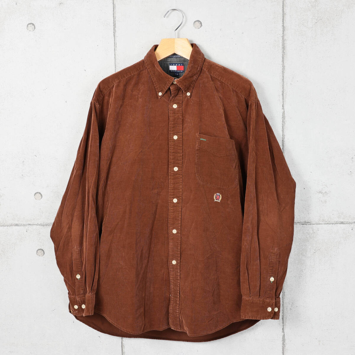 | 【ブランド】 TOMMY HILFIGER / トミーヒルフィガー 【アイテム】 1990年代 コーデュロイ素材 ボタンダウンシャツ 【商品説明】 アメリカで購入しました、1990年代頃のトミーヒルフィガーのコーデュロイ素材が使用されたボタンダウンシャツになります。 【カラー】 ブラウン 【コンディション】 使用に伴う色落ちや擦れなどがあります。 右袖部分に汚れがあります。 【サイズ】 サイズ:L 身幅:64cm 肩幅:54cm 着丈:80cm 袖丈:60cm | |||
