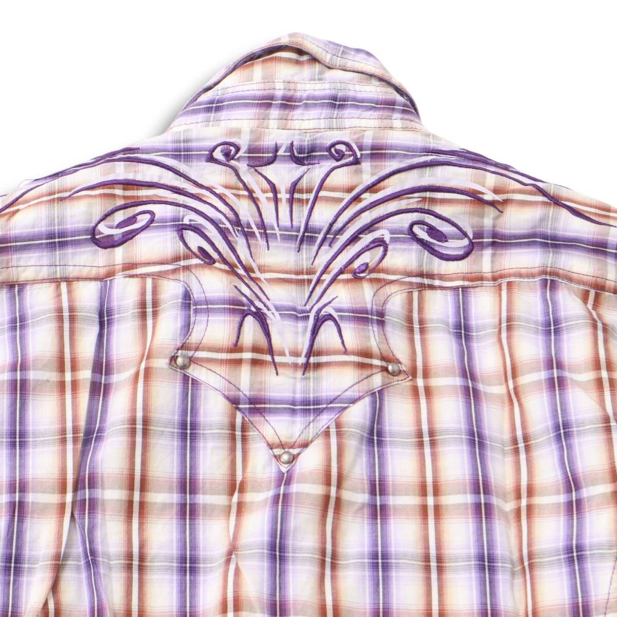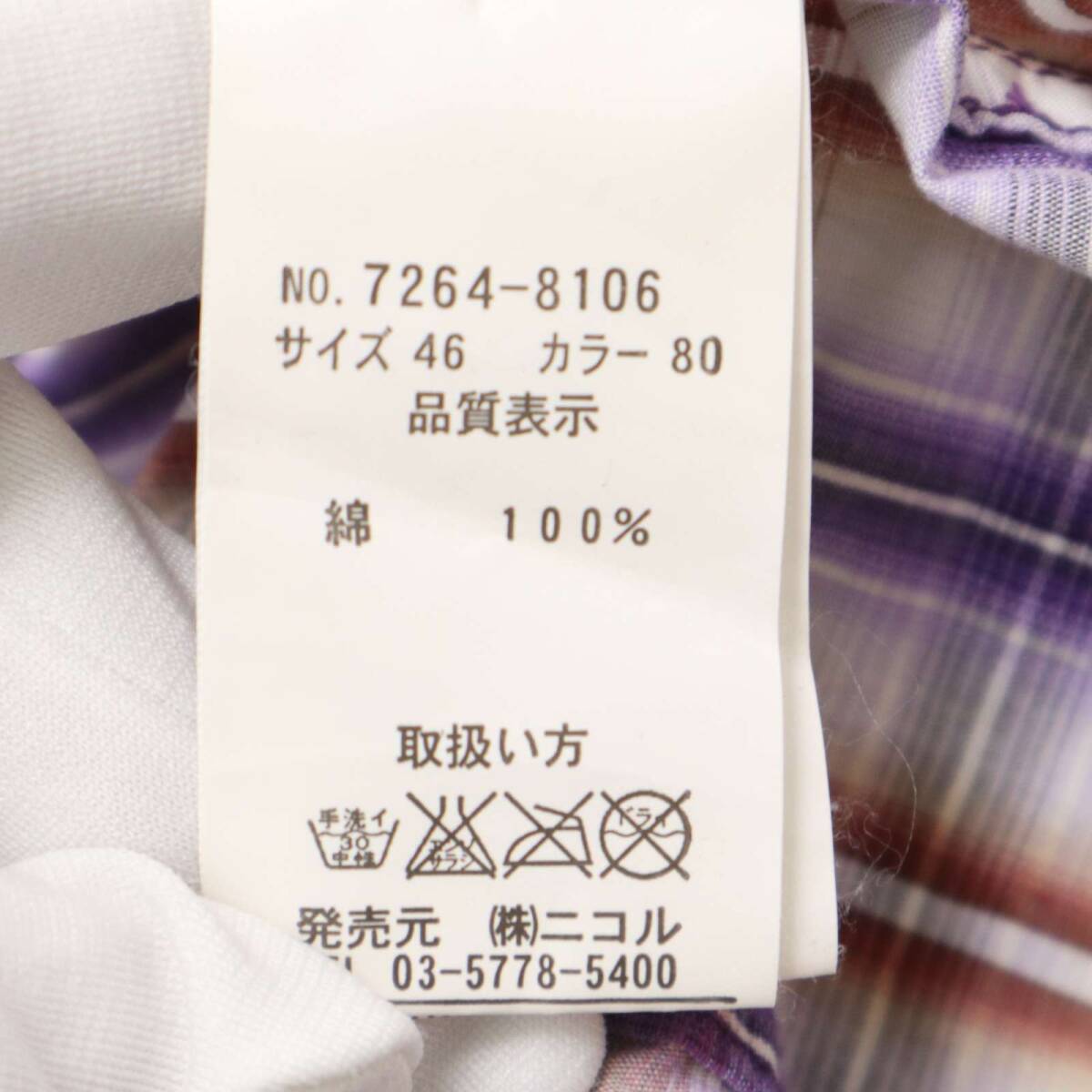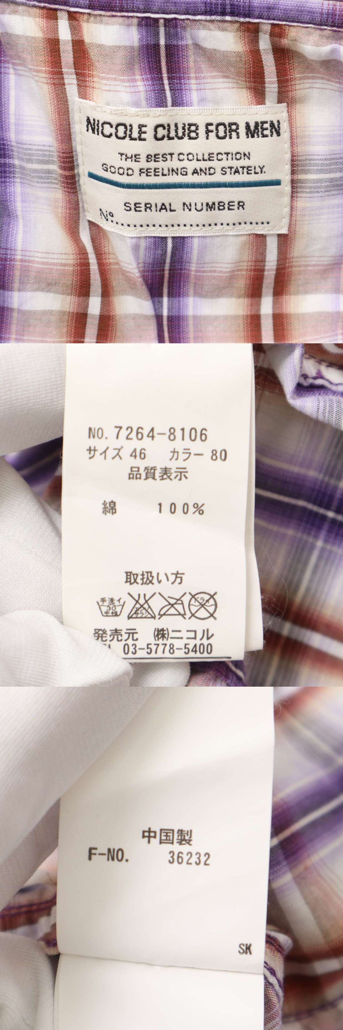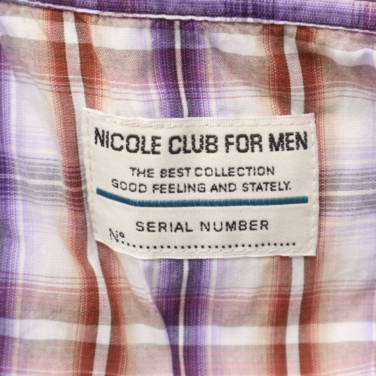 NICOLE CLUB FOR MEN ニコルクラブ フォーメン バック刺繍★ 半袖 ウエスタン チェック シャツ Sz.46 メンズ