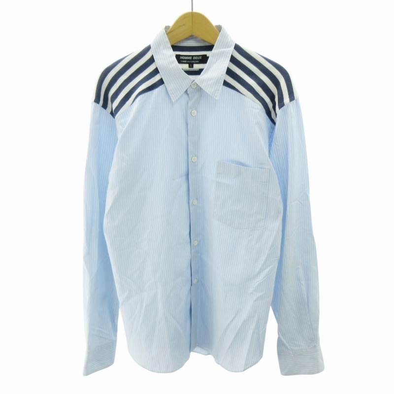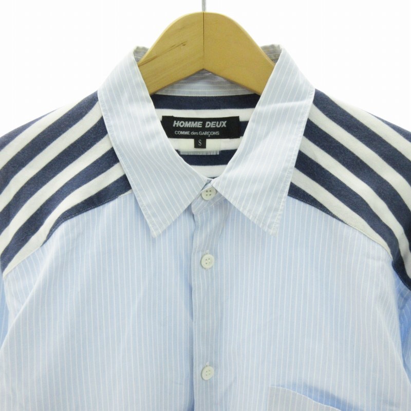 コムデギャルソンオムドゥ COMME des GARCONS HOMME DEUX AD2013 ストライプシャツ 切替 DM-B060 青 ブルー S ●ECO 0627 メンズ