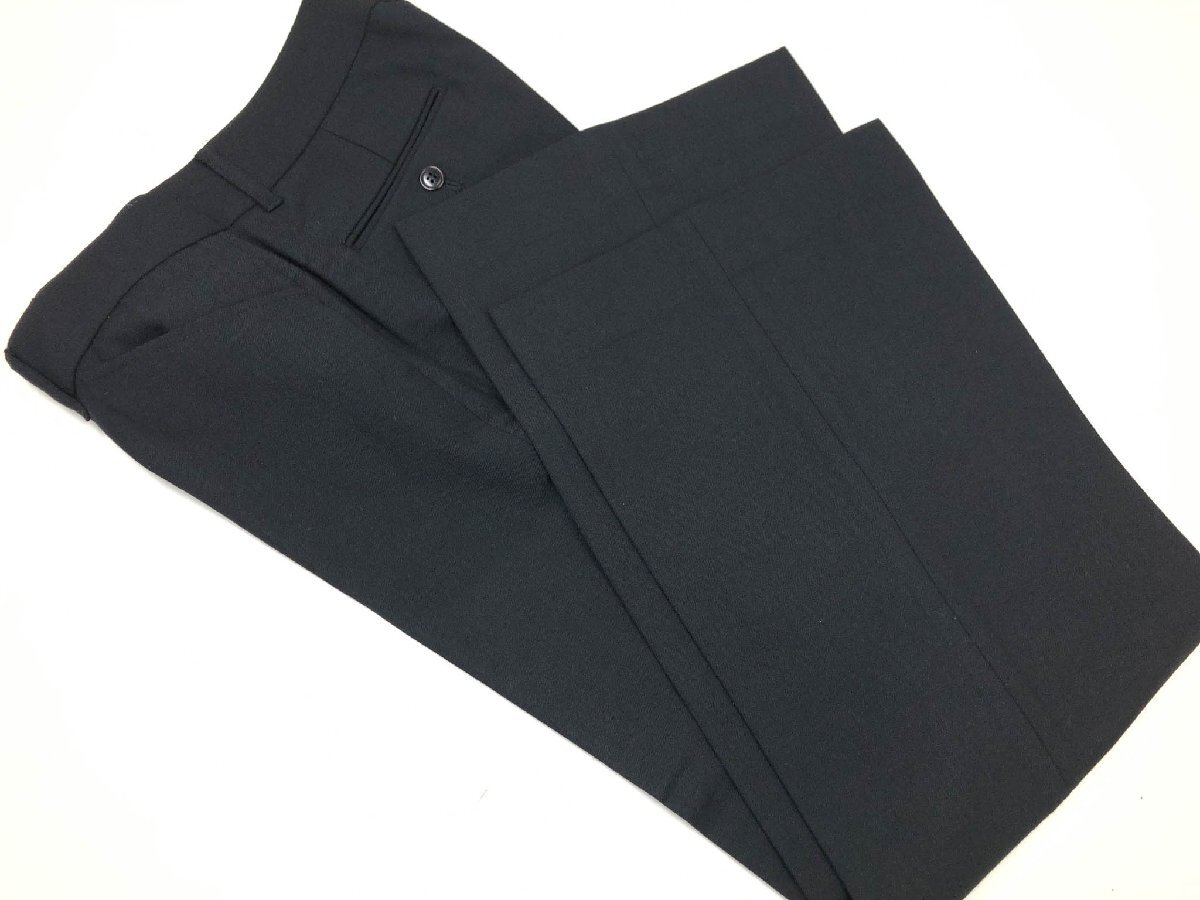 ・スラックス・・・ウエスト実寸約76センチ、股上約24センチ、渡り幅約30センチ、股下約74~75センチ、総丈約97センチ、裾幅約27.5~28センチ、ヒップ幅約46センチ、裾はシングル仕上げ、最大で2センチ出しが可能です。