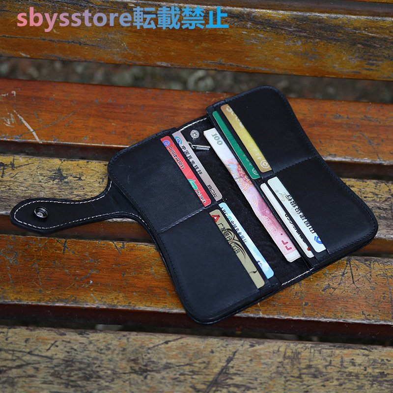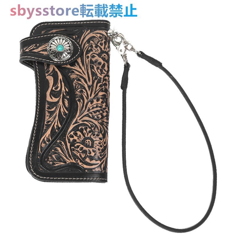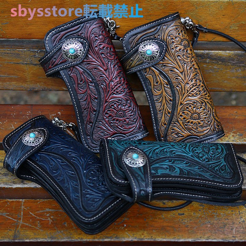 新作 長財布 ハンドメイド 本革 高級牛革使用 サドルレザー バイカーズ ライダース ウォレット チェーン紐付き 茶色 ブラウン