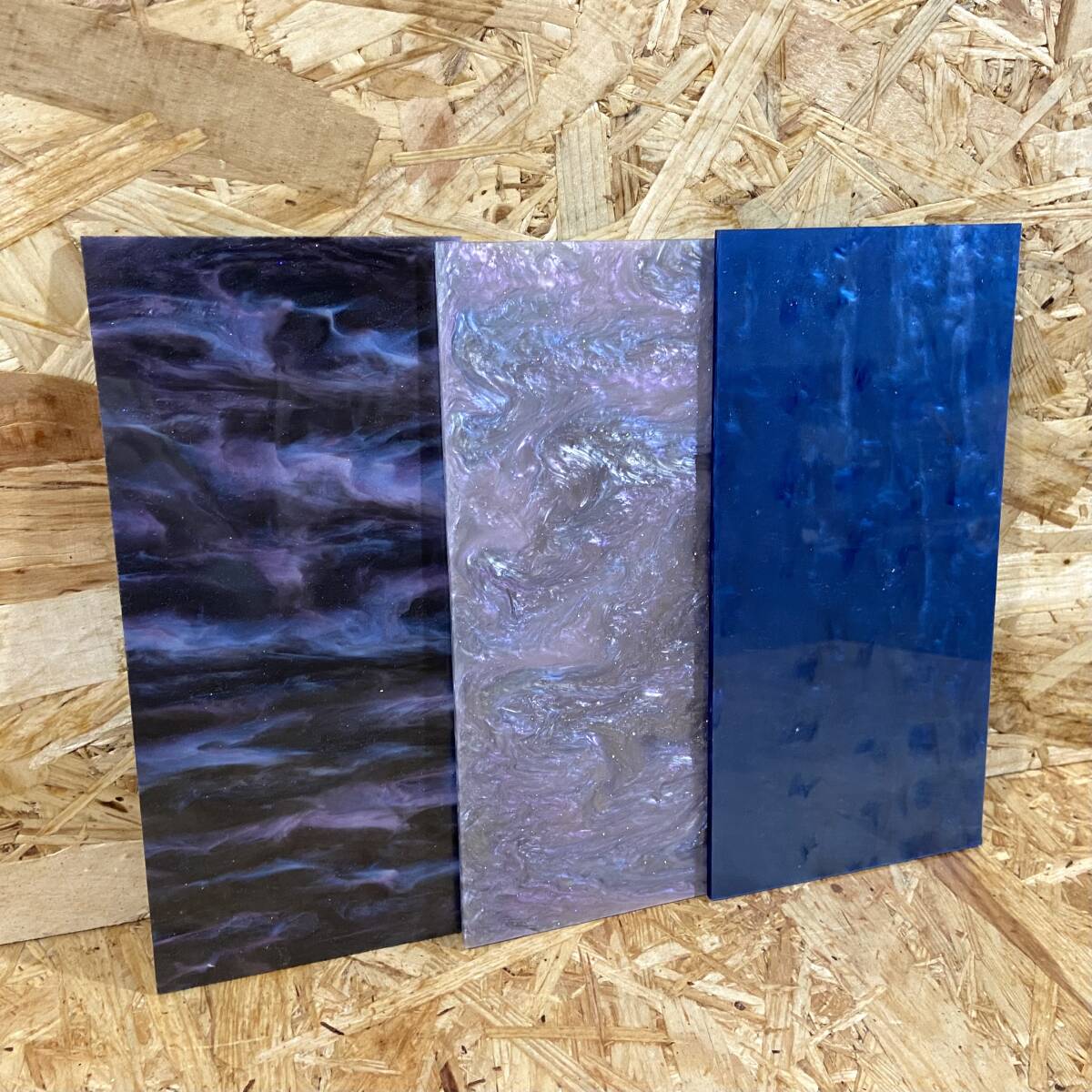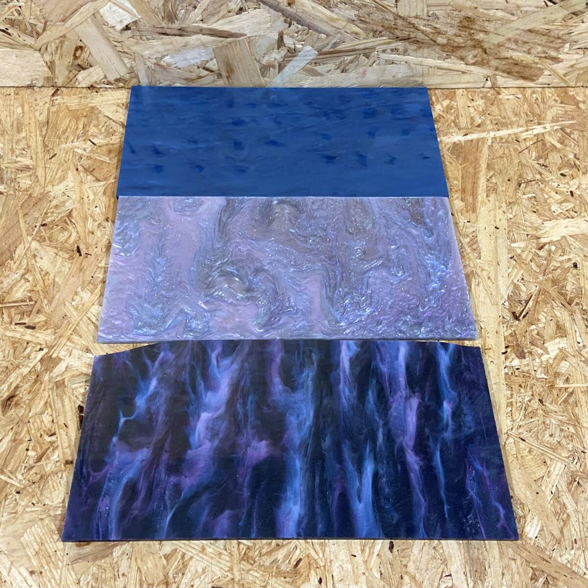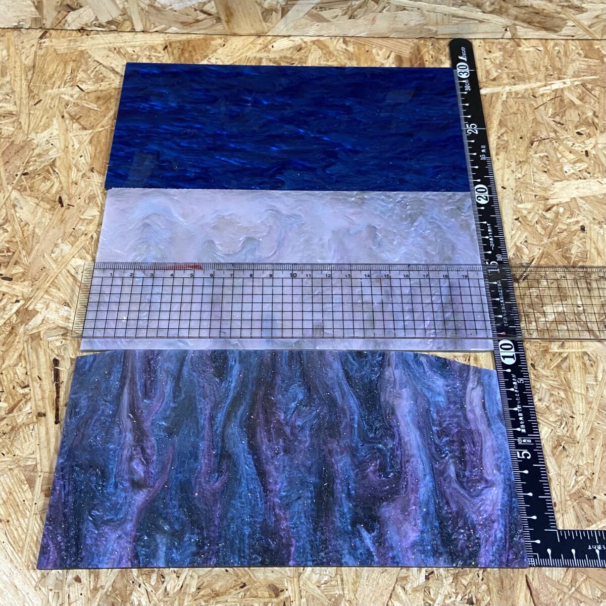 アクリルパール板 メタルマーブル模様3色セット 流雲柄ラメ入り 20cm/10cm×3枚 青・桜色・黒紫