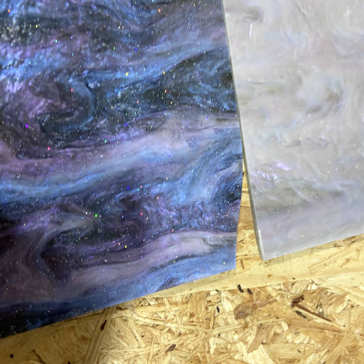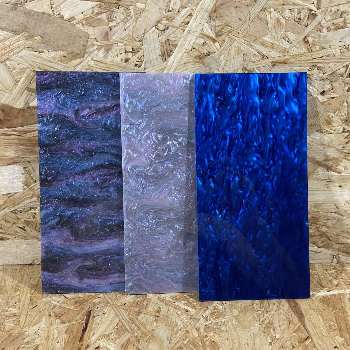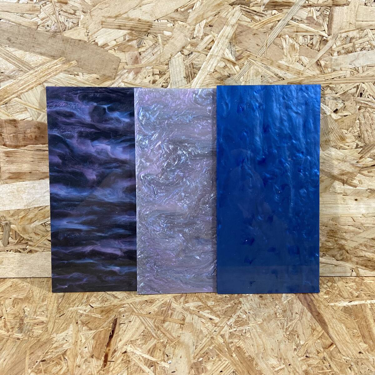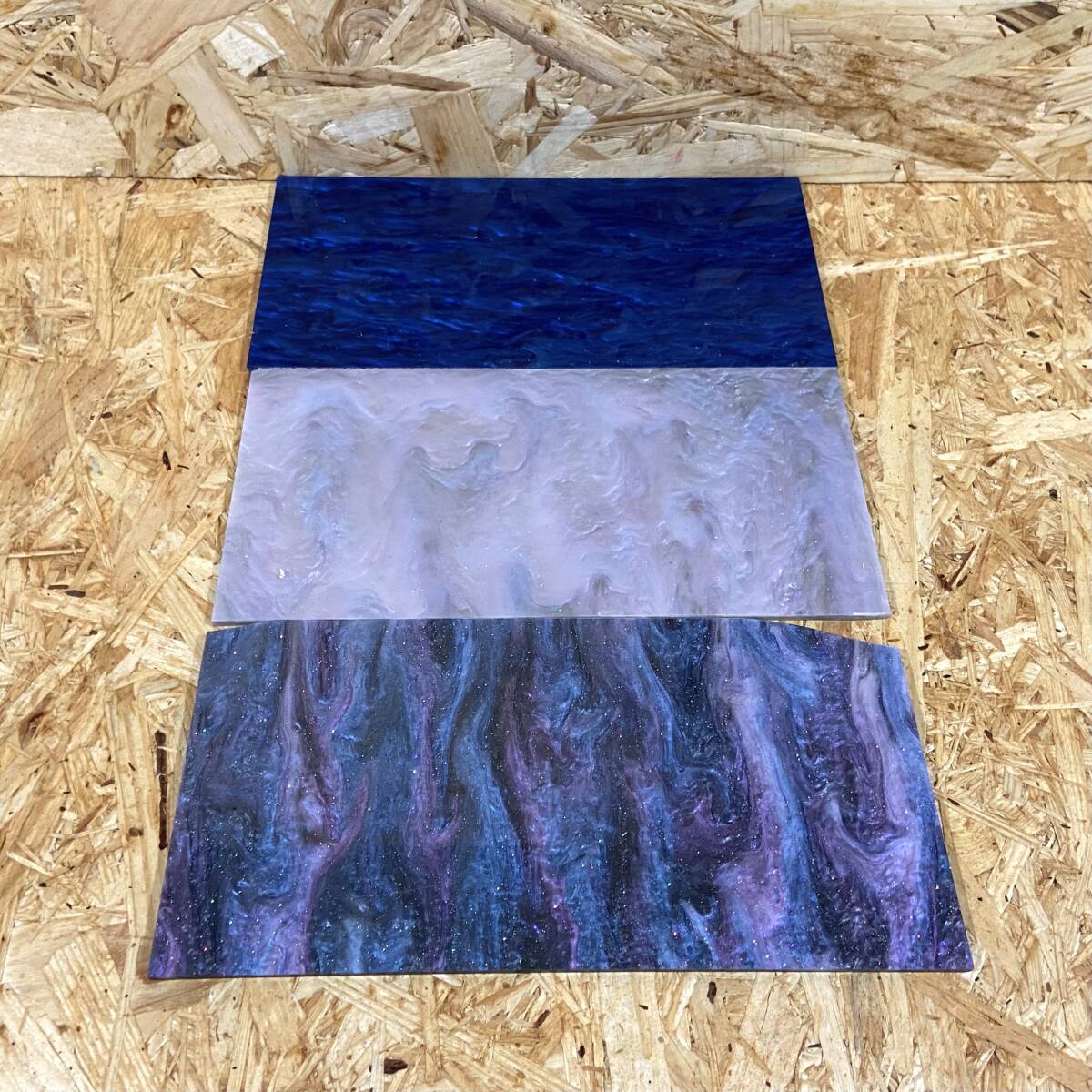 アクリルパール板 メタルマーブル模様3色セット 流雲柄ラメ入り 20cm/10cm×3枚 青・桜色・黒紫