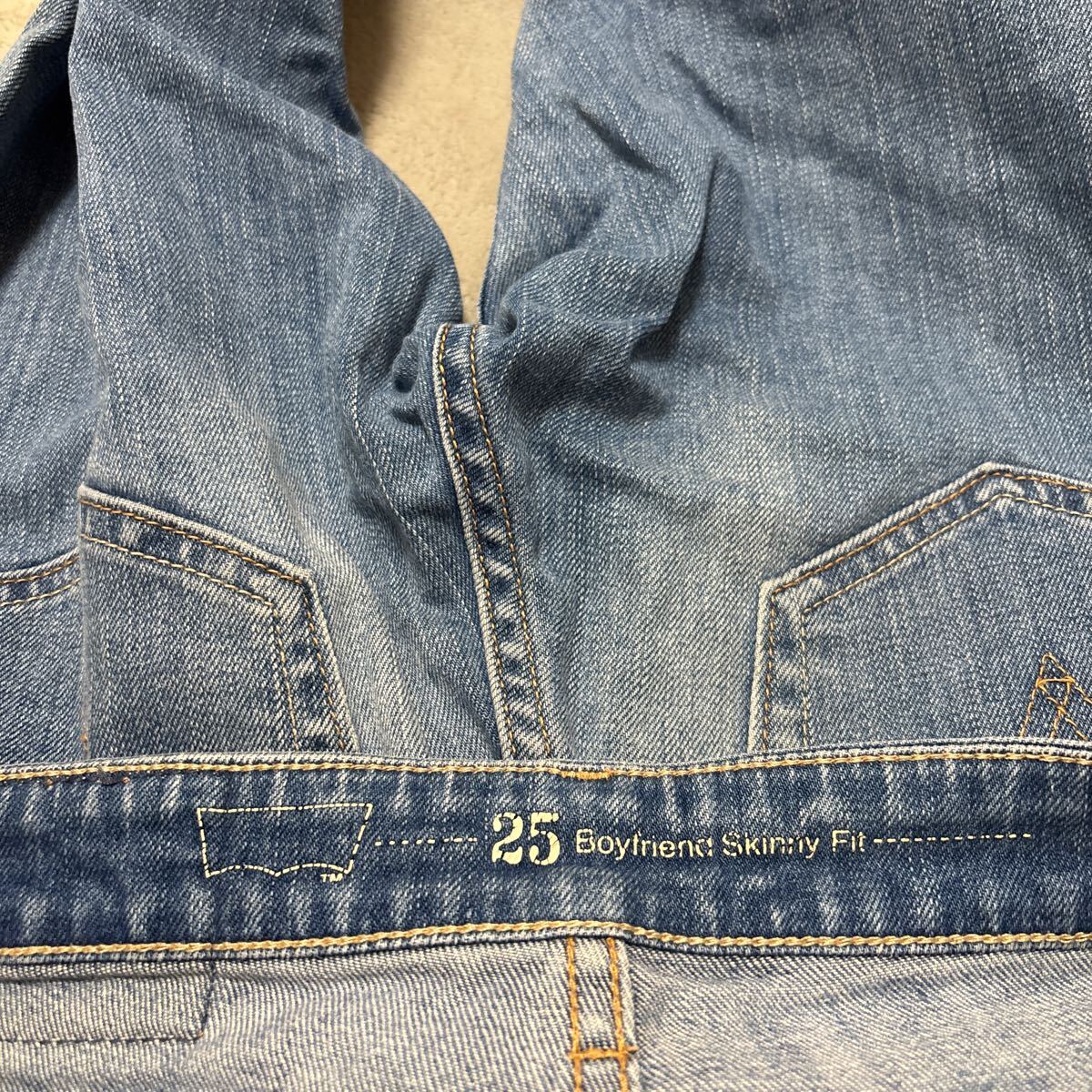 【鬼髭 ハチノス】 Levi’s リーバイス Boyfriend Skinny Fitデニム ストレッチ スキニー W25 レディースMサイズ相当 レディースデニムです。