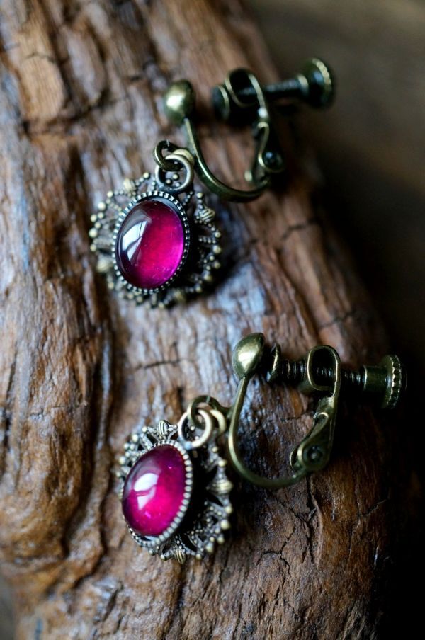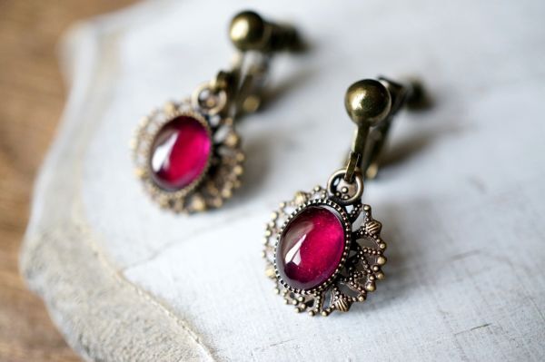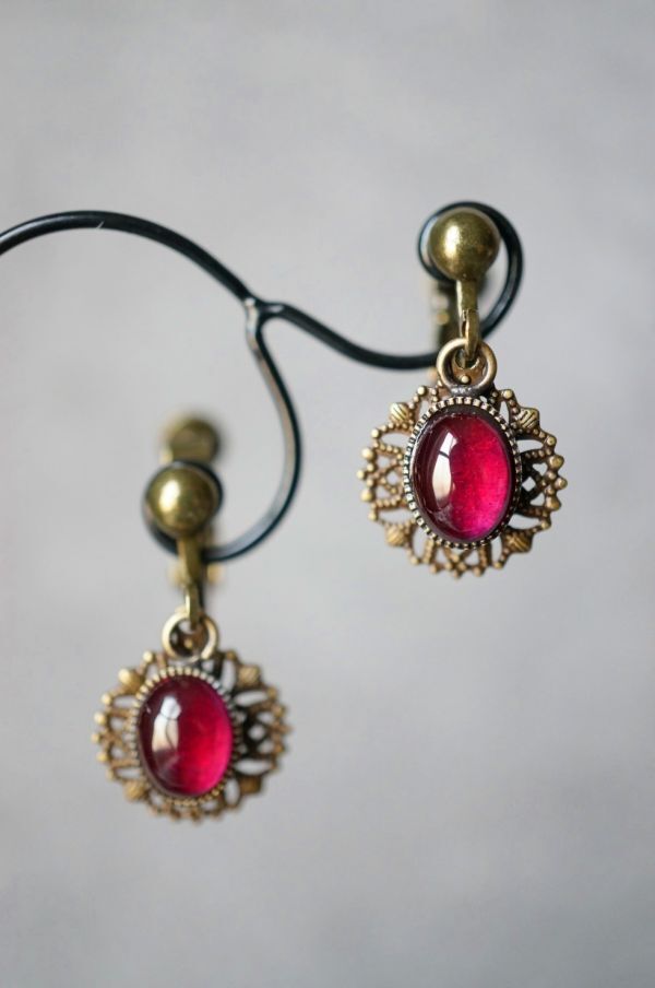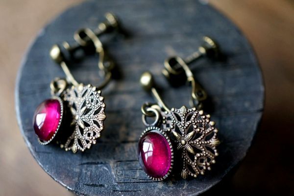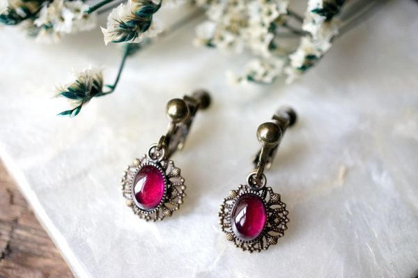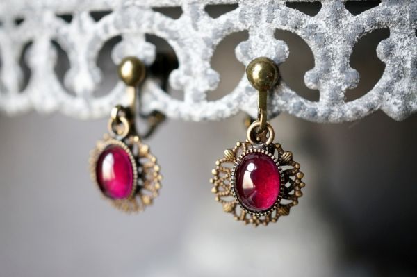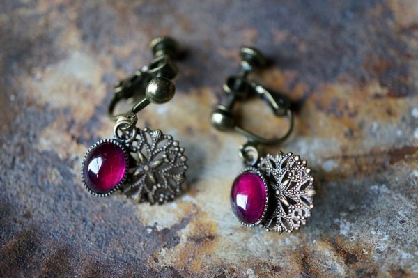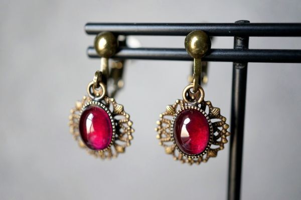 イヤリング 571 コランダム(人工ルビー)のイヤリング アンティークブロンズカラー金具使用 天然石・パワーストーン現品限り