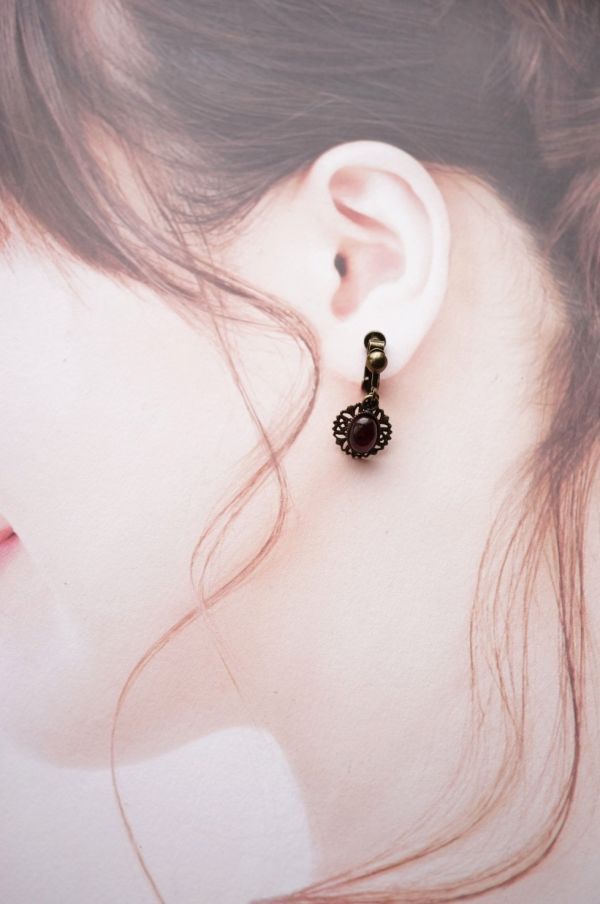 ねじバネ式のイヤリングなので、好みに合わせて留め金具の強弱調整出来ます。