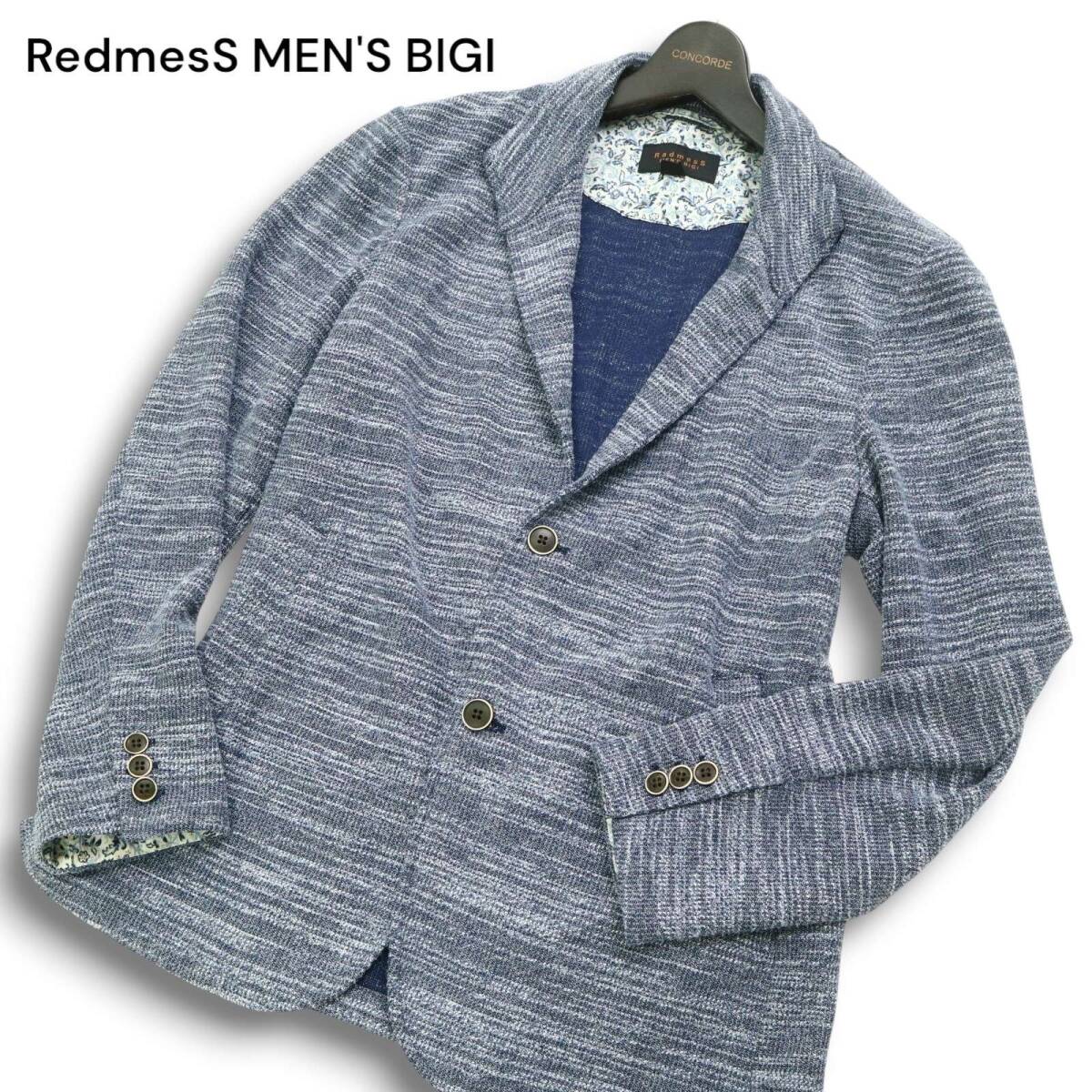 20ss RedmesS MEN'S BIGI メンズビギ 通年 襟ワイヤー★ メランジ ニット テーラード ジャケット カーディガン Sz.4 メンズ