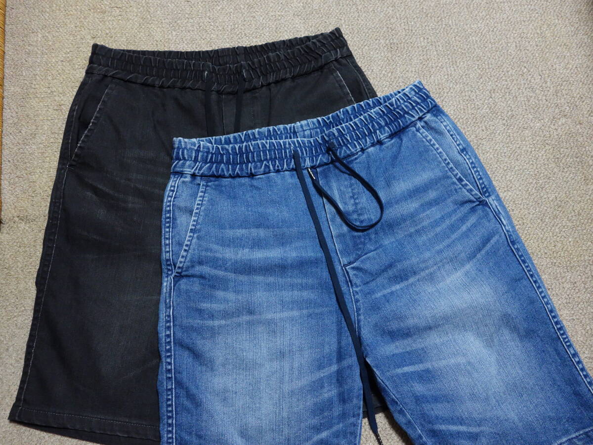 レッドカードのデニム生地のハーフパンツ(ブルーとブラック)の2本セットです。