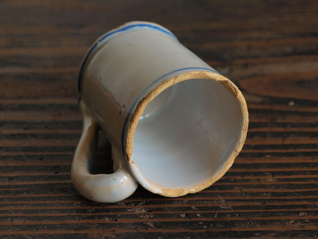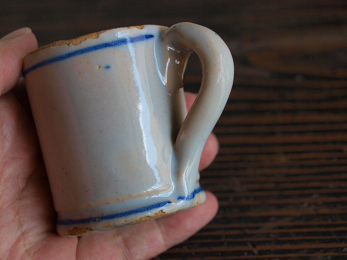 白に青いラインの小さなカップ マニセス ブリュロカップ 陶器 1910年代 スペイン古陶 コーヒーカップ エスプレッソ アンティーク/J637 ●サイズ: 5.2cm×5.6cm 約91g ●材質:軟質陶器 ヨーロッパの蚤の市で入手。1910年代ぐらい。中世からスペインの重要な貿易都市として栄えたバレンシア州のマニセス(マニゼス)陶器。うっすら青味を帯びた釉薬。つまみを含めた幅6.6cm。ご覧のように釉薬のハゲや欠けなどあります。参照資料、コレクションにいかがでしょう。 詳細は写真でご確認いただけます。古い物だと言う事をご理解の上のご入札をお願い致します。材質及び年代の判定は困難な場合があります、差異についてはあらかじめご了承下さい。 ー ー ー ー ー ー ー ー ー 記載にない方法での発送はいたしません。 発送をお急ぎのお客様にはご希望に添えない場合があります。 ー ー ー ー ー ー ー ー ー ●その他 ヤフオクの小さな写真では商品を詳細にご覧頂く事ができません。リンク写真で質感ダメージ等の写真を数多くアップしています。必ず全部の写真がよく見える環境でご覧下さい。本商品は時代を経た古い物です。写真や説明で記載できないようなキズやシミ、古い物特有の臭いのある物もあります。できる限り詳細に説明するよう努力しておりますが、ご理解頂ける方、神経質で無い方、埃によるアレルギー等の無い方のご入札をお願いします。 必ず当店の自己紹介欄と落札後の落札通知をご覧下さい。 土曜日曜日は基本的には定休日です。メール、質問への回答は月曜日にいたします。 ご連絡は落札後48時間以内にお願いします。ご連絡が無い場合はお客様都合によるキャンセルとさせて頂きます。落札から1週間(土日祝日含む)経過してもご入金が無い場合も同様といたします。ご注意下さい。 特に評価「0」の新規のお客様、および 私とのお取り引きが初めてのお客様は遅れる事の無い様にお願い申し上げます。 評価の悪いお客様のご入札は取り消す場合があります。 入札の取り消しおよびキャンセルは固くお断りいたします。 自己紹介欄には急な連絡事項等も記載してあります、ご入札前に必ずご覧下さい。落札後には『落札通知』の内容も必ずご確認ください。 当オークションをご覧下さりありがとうございました。 Accept Paypal payment |