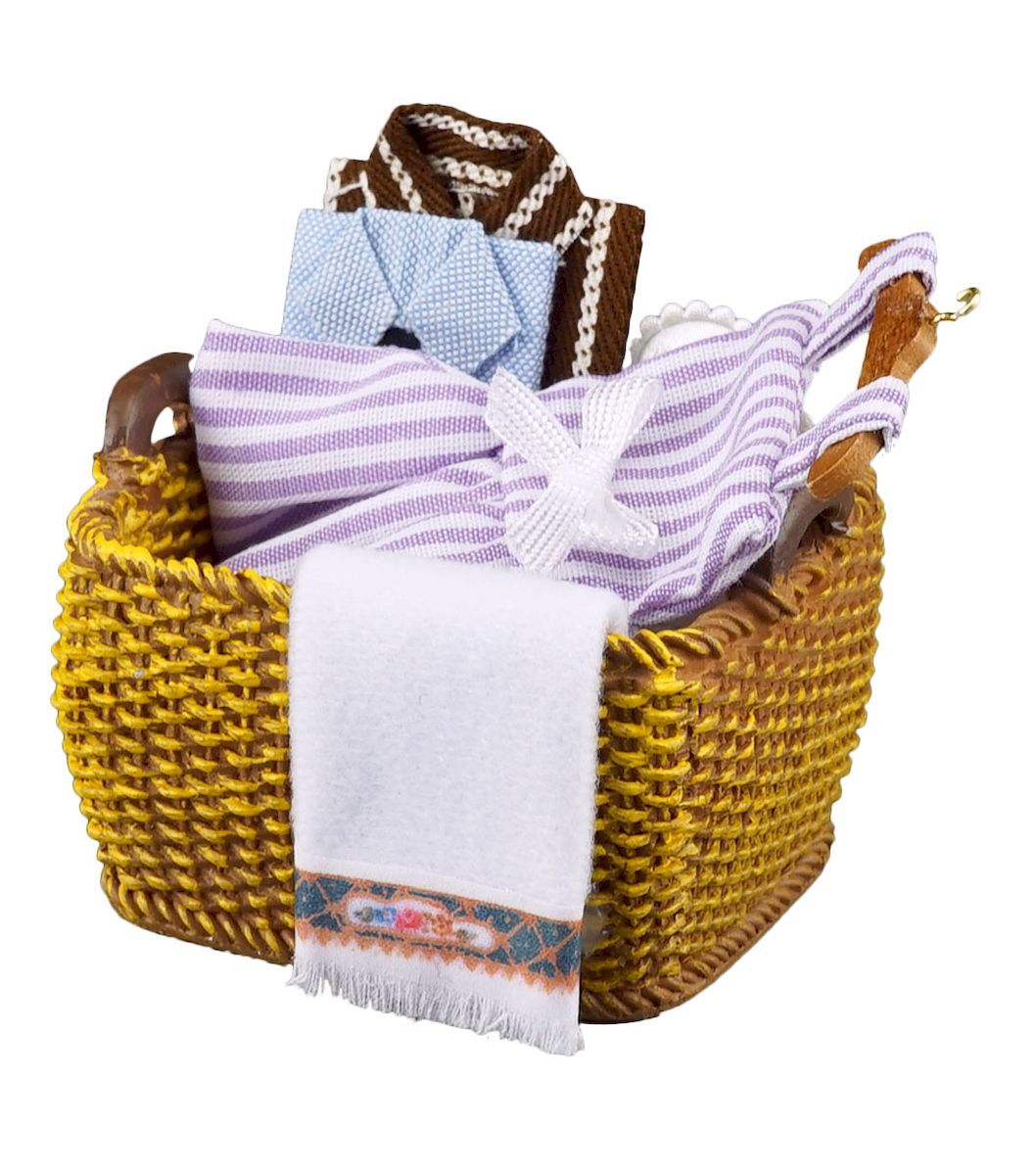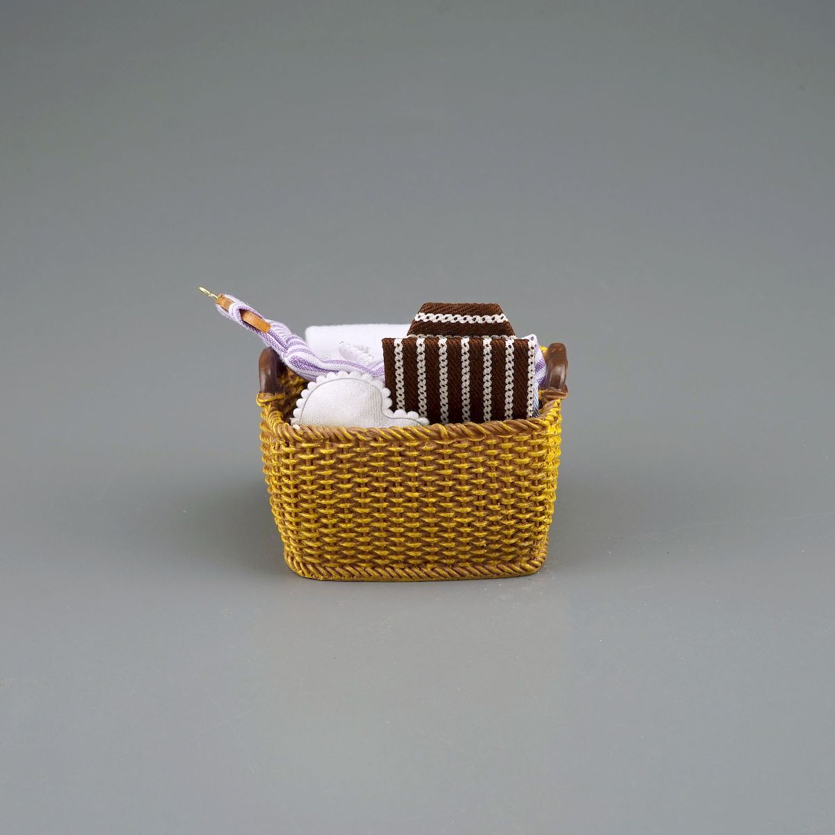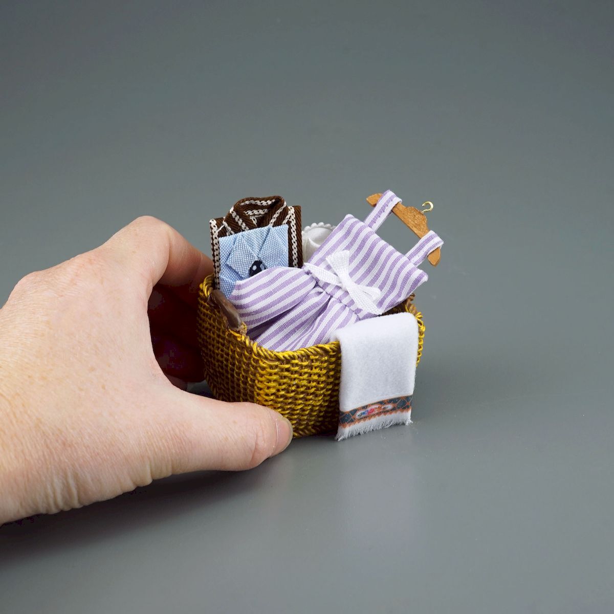 ドイツロイター社製のミニチュアです。かわいいドレスやシャツが詰まった、洗濯かごです!かわいいですね…ロイターのバスルーム家具と一緒に置くと、さらにかわいさ倍増です!※小物は取り出せません。バスケットはレジン製で、少し重みがあります。バスケットのサイズ:W60xD43xH43mm。スケールは1/12です。※タオル、ハンガーなども取り外せません。