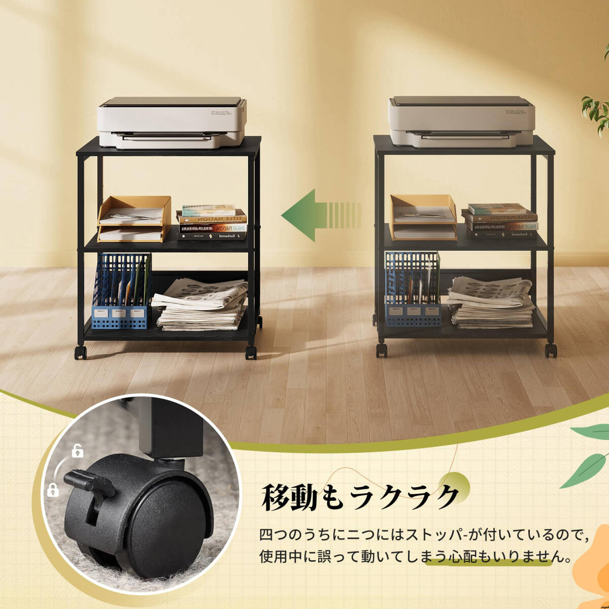 【頑丈なスチールフレームと耐水・耐摩耗メラミン化粧板で長く使える】プリンター台 幅60cm 耐荷重70kg キャスター付き