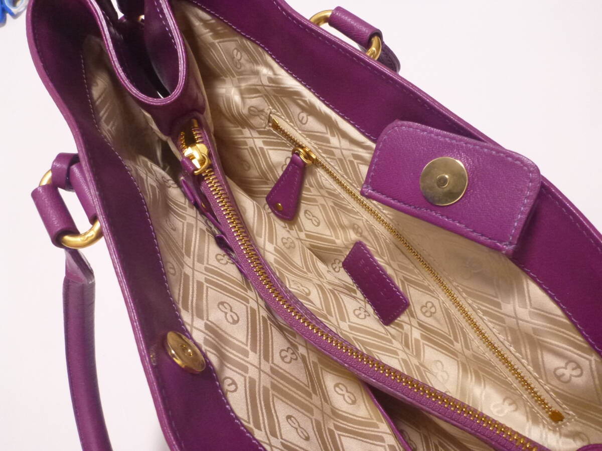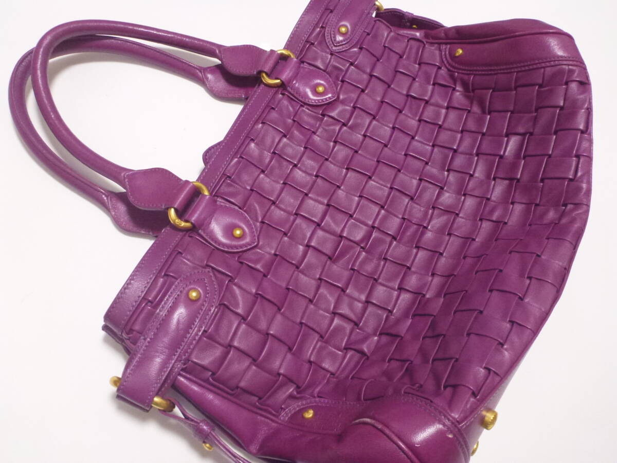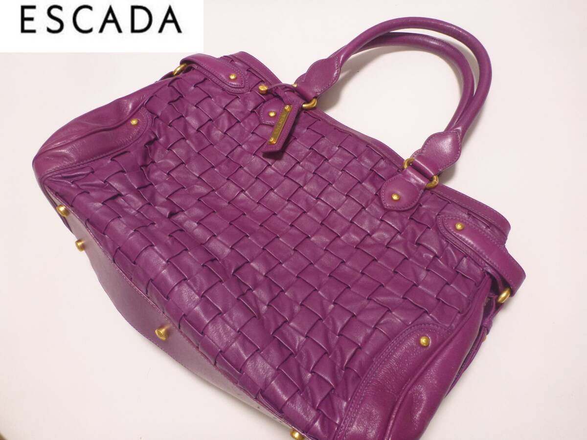 美品 ESCADA エスカーダ ★高級 紫 パープル 本革レザー バッグ トートバッグ
