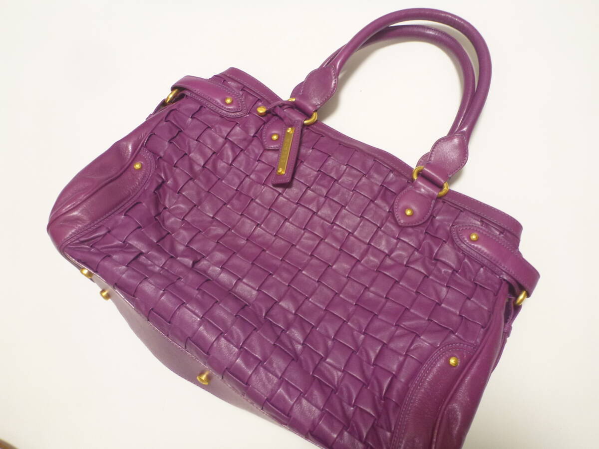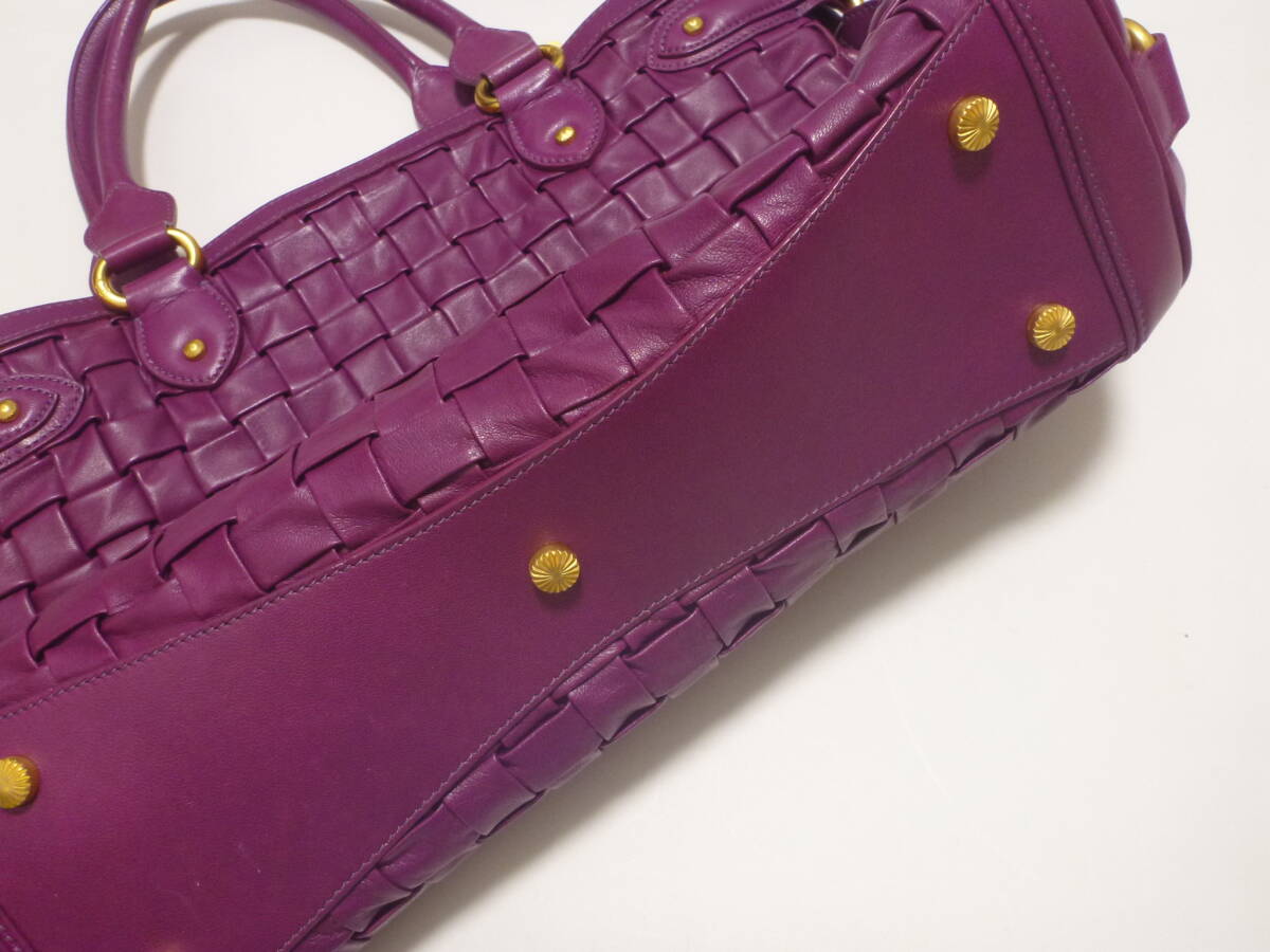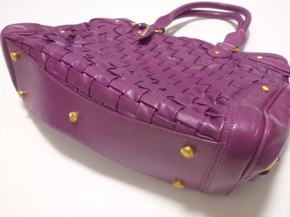 美品 ESCADA エスカーダ ★高級 紫 パープル 本革レザー バッグ トートバッグ