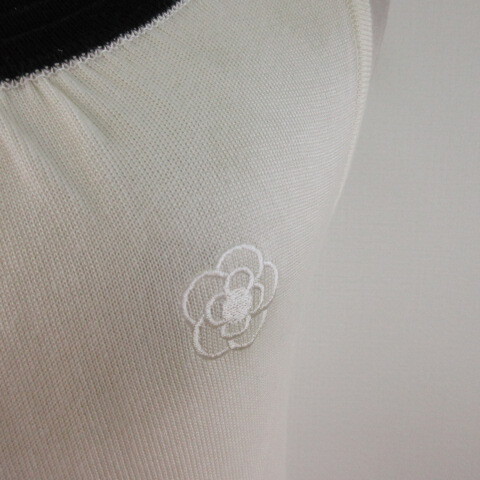 クレイサス CLATHAS ニット ノースリーブ ワンポイント オフホワイト 白 38 *T498 レディース