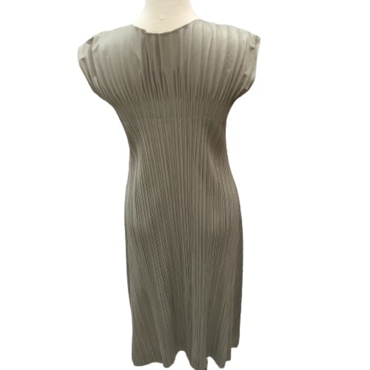 【商品名】中古 ISSEY MIYAKE イッセイミヤケ PLEATS PLEASE 変形 ワンピース 消しプリーツ SIZE 4 ベージュ やや傷や汚れあり