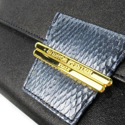 アンドレア フィステル ANDREA PFISTER ショルダーバッグ レザー 革 パイソン ロゴ刻印 黒 ブラック /CK22 ■GY18 レディース