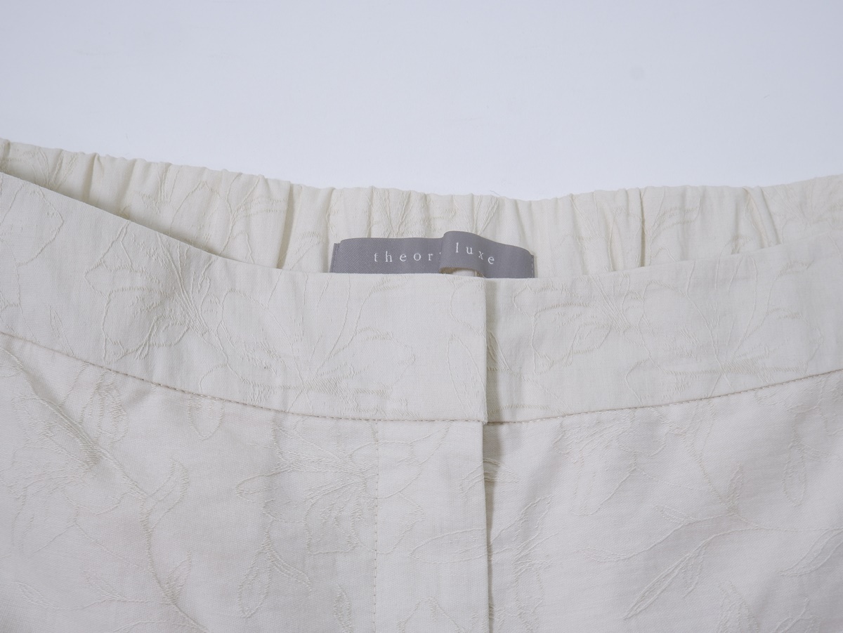 【素材感】ややハリ感のある生地 【透け感】薄っすらあり 【裏地】あり 【ストレッチ】なし 【開閉デザイン】ホック・ジップ・ボタン 【付属品(取り外し可)】なし 【商品情報】『品番03-5206405/商品名Blossom Salut St Pant』控え目なワイドシルエットのクロップドパンツ。後ろウエストにのみエラスティックを入れたリラクシーな着用感。花柄のジャカード素材を使用。ご自宅で手洗い可能なウォッシャブルタイプ。洗濯表記に従ってお手入れしてください。 |
