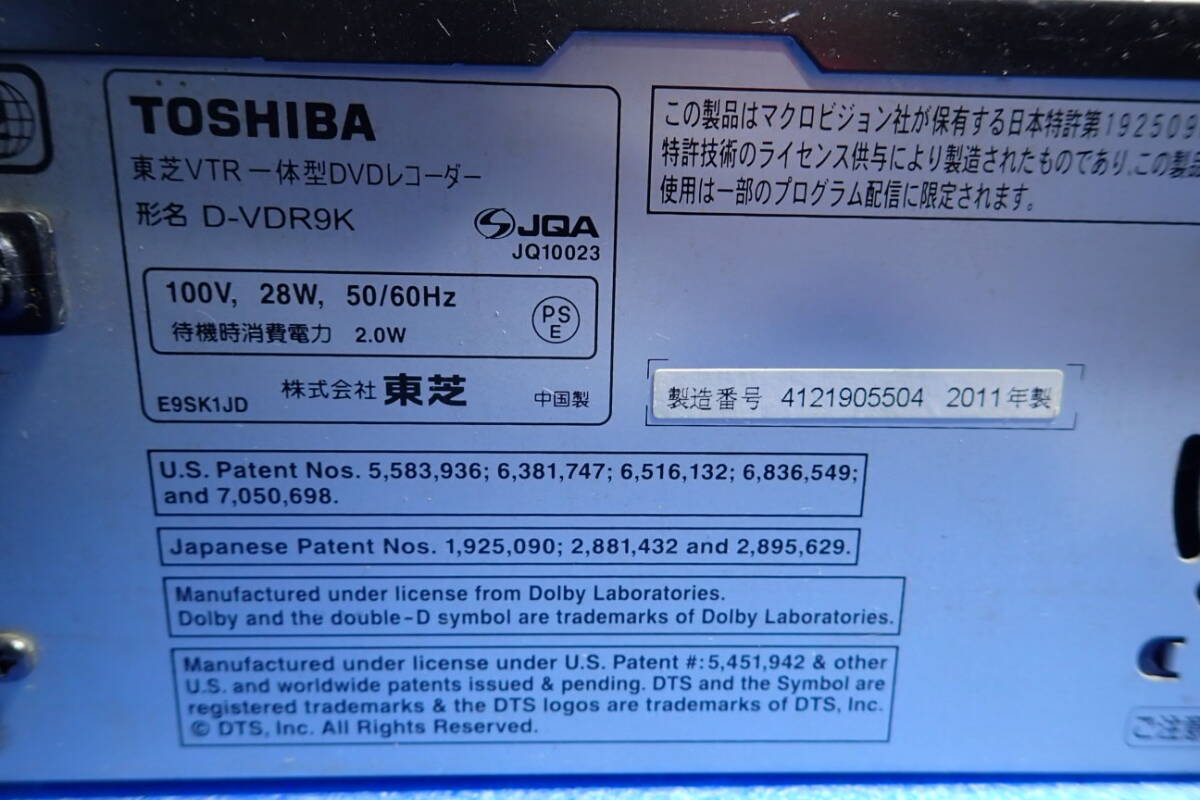 D73#TOSHIBA 東芝/地上デジタルチューナー内蔵VTR一体型DVDレコーダー/D-VDR9K