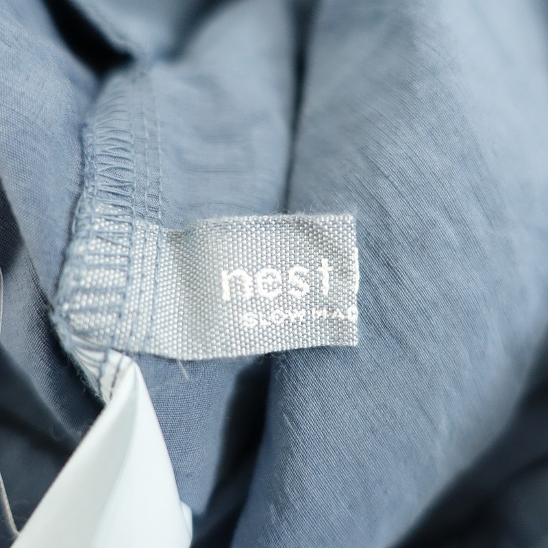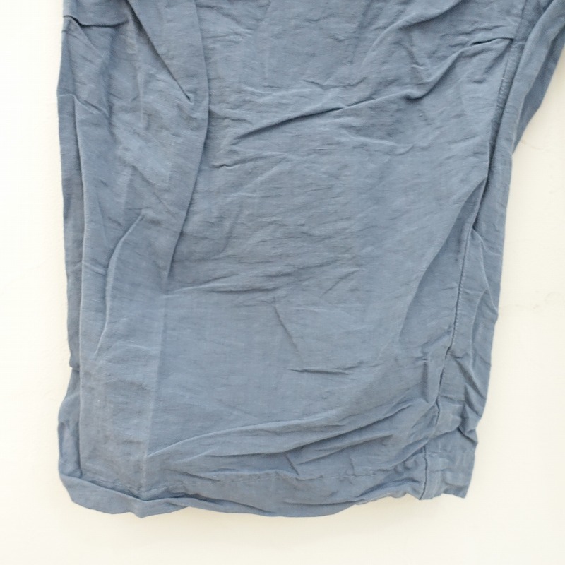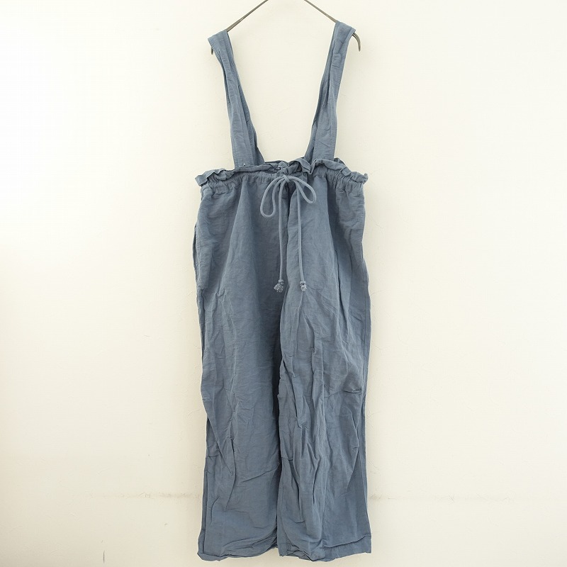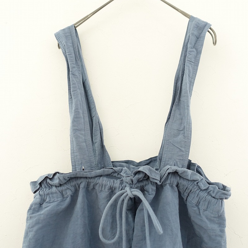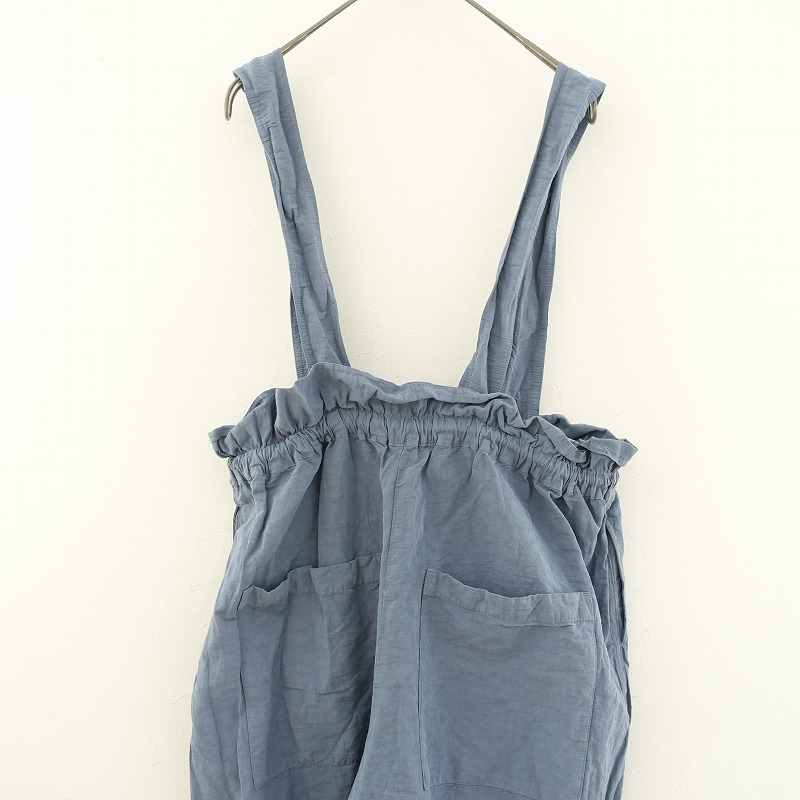 nest Robeのコットンリネンタイプライター2WAYサロペットパンツです。カラーは風合いのあるスモークブルーです。製品染めの商品で、染めムラや色味があり、経年変化を楽しむことができます。サラリとしたハリのある、綿麻の高密度に織られたタイプライター生地を使用。透け感はなく、麻特有の糸節・ネップ・染ムラ・シワなどが見受けられるナチュラルな素材です。共布のサスペンダーは着脱&4ホールの調節が可能。ウエストはゴム&紐入りのイージー仕様。ヒップにパッチポケット、両サイドにシームポケットがございます。定価(メーカー希望小売価格)26,400円の商品です。 |