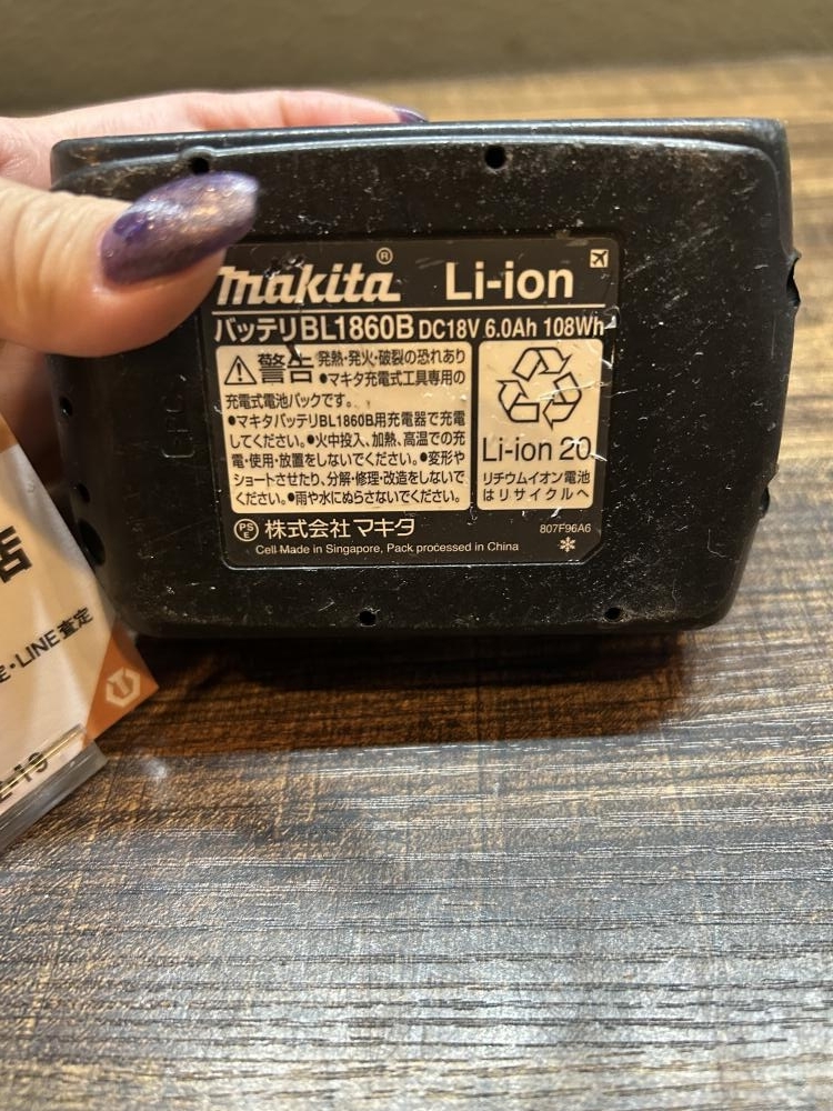 makita マキタ ■商品名 18V6.0Ah純正バッテリ ■型番 BL1860B |