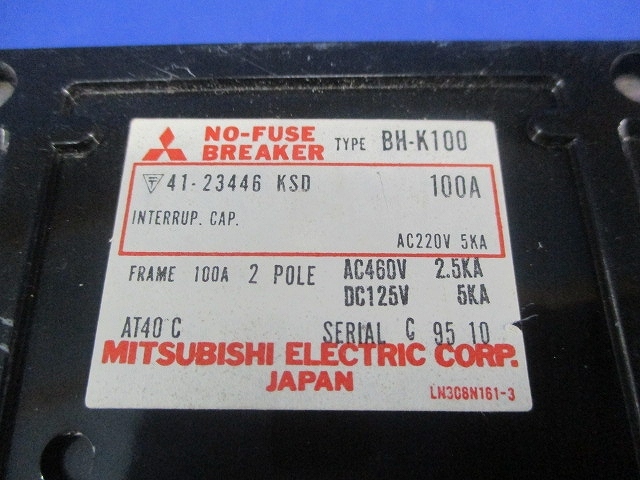 ノーヒューズブレーカ 2P100A(ジャンク品) 三菱電機 BH-K100