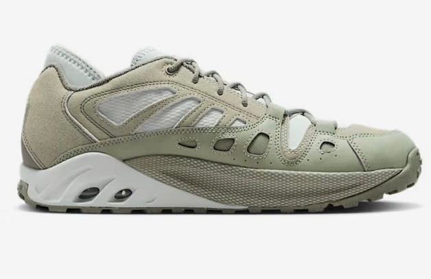 多くの個性溢れるモデルが展開された。この"AIR EXPLORAID(エア エクスプロレイド)"は1999年にトレイルランニングシューズとして誕生。高いフィット感を得られるように伸縮性に優れたネオプレーン製のインナーブーティを装着し、足全体をタイトに包み込むようなフィッティングを実現。さらに、その上には外骨格のような補強パーツを重ねることで、優れた耐久性を備え、適切な足の動きをサポートするように設計されている。ソールユニットはぐらつきとタフさを実現すべく、格子状のウェブ素材で強化。クッショニングにはヒールに"AIR(エア)"を内蔵している。