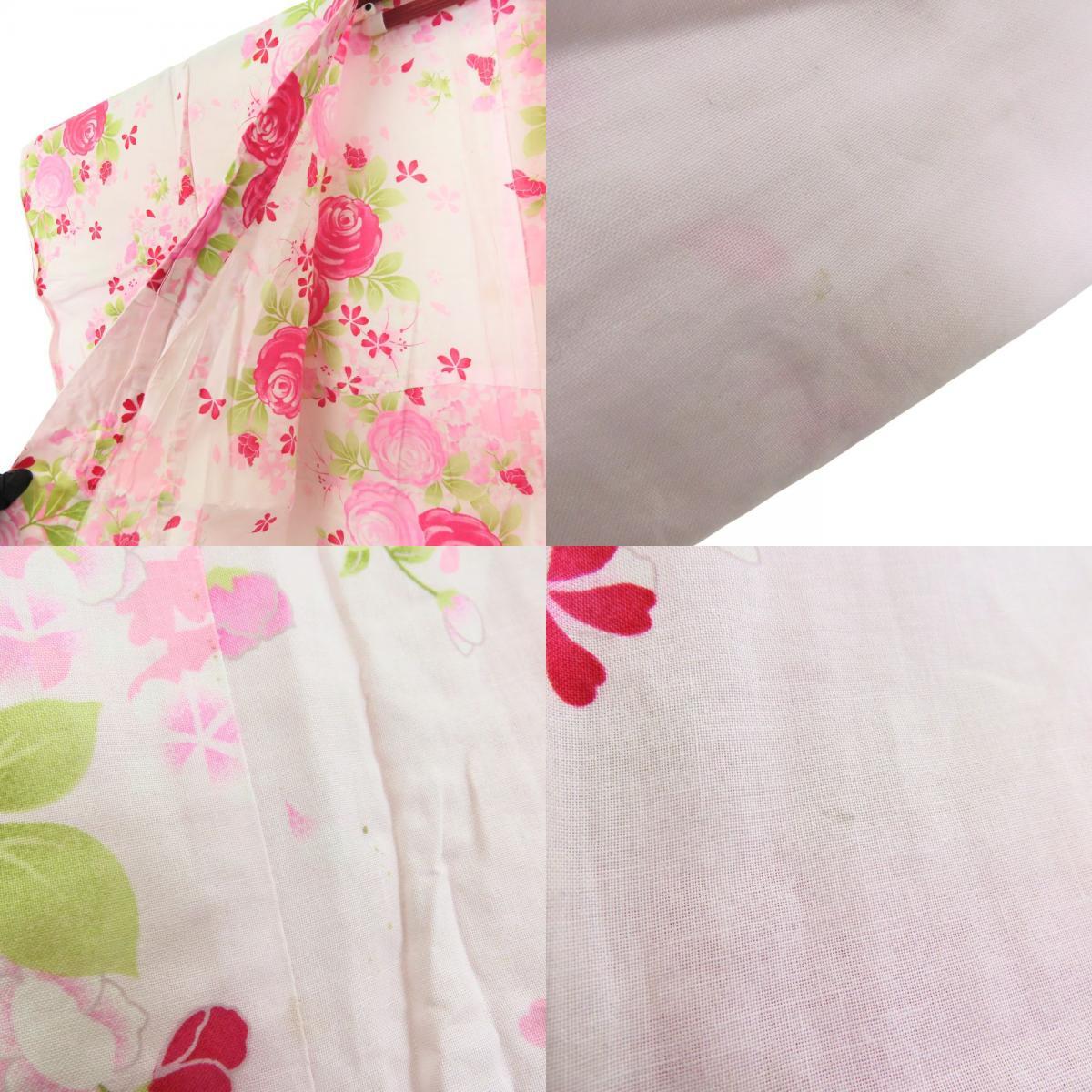 中古 浴衣 2点セット 小袋帯 綿 ポリエステル ピンク系 薔薇 リボン 可愛い 和装 呉服 和服 きもの レディース 女性