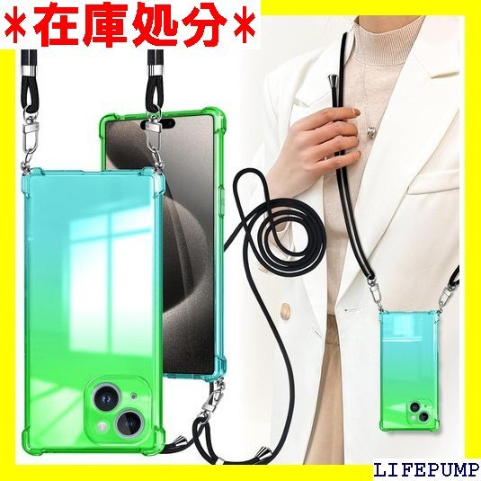 iphone15 用 ケース ショルダー クリア アイフォン15 用 カバー 耐衝撃 TPU 肩がけ 首掛け 紐付き 薄型 縄掛け ケース 斜めかけケース 軽量 取り外し可能 調節可能な ショルダー 肩がけ 首掛け 紐付き 緑緑+縄掛け-ブラック 08009-IP15-02 1385