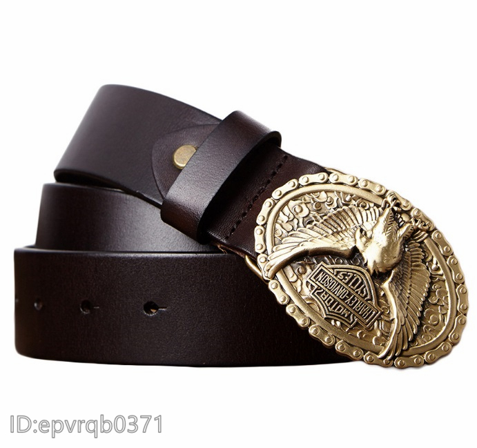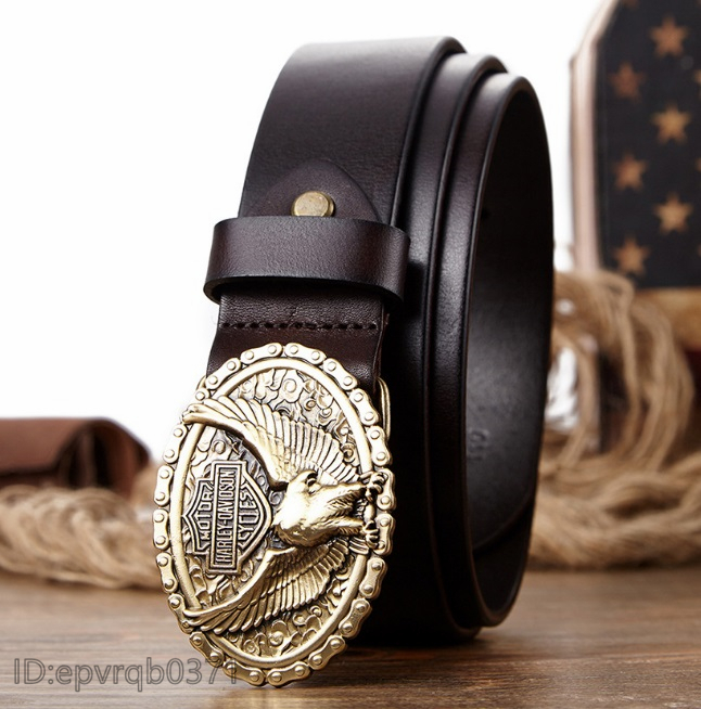 新品◇メンズベルト 上質本革 イーグルバックル ピンバックル式 牛革 レザーベルト 紳士用 ポンチ付き 長さ調整可能 /茶色