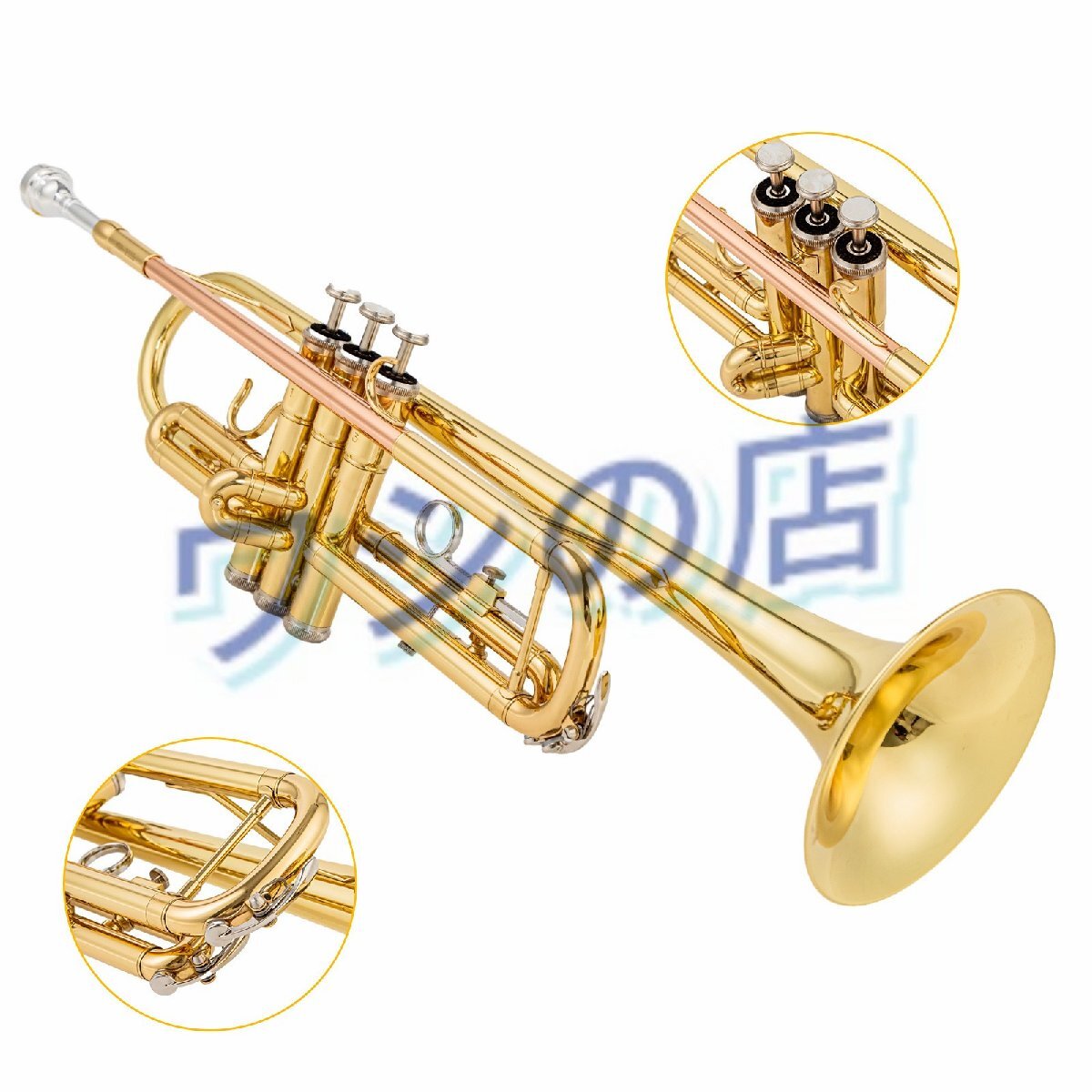 真鍮 / 金銅製トランペット ♭B 調 子供・専門学生向け 漆塗り金仕上げ 管楽器
