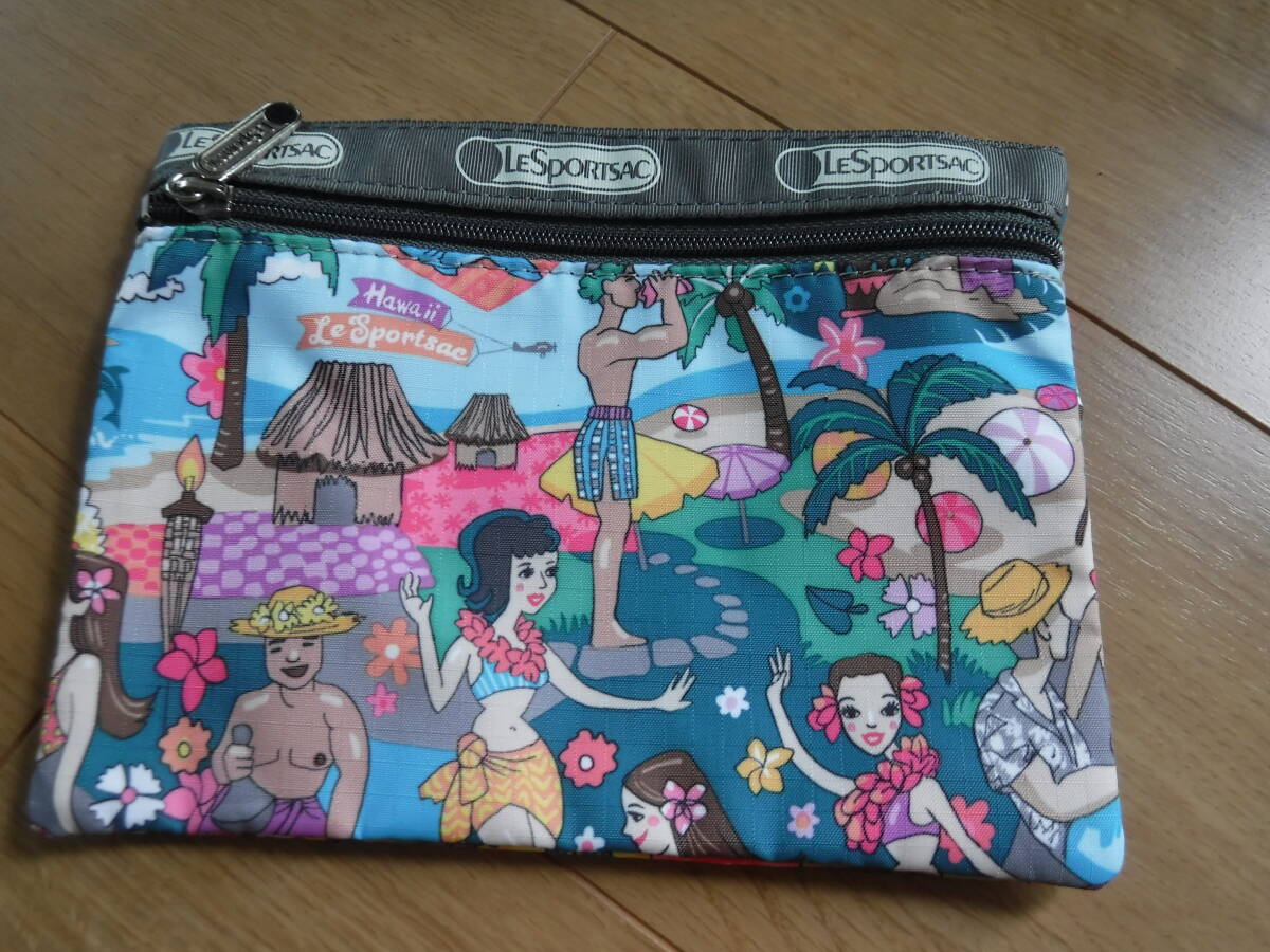 税不要特価 新品!LESPORTSAC レスポートサック ハワイ限定 ルアウ フラガール ヤシの木 モンステラ ポーチ♪②