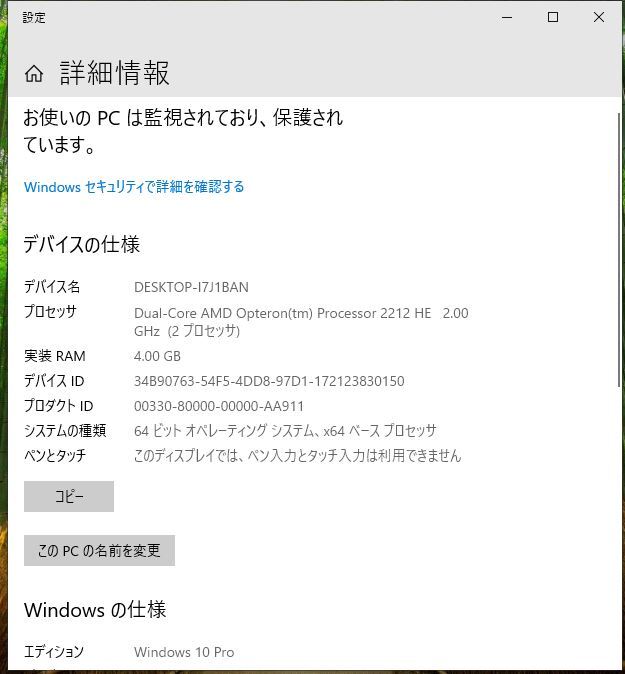 CPU :Quad-Core AMD Opteron 2212(2.0GHz/2MB L2キャッシュ)×2