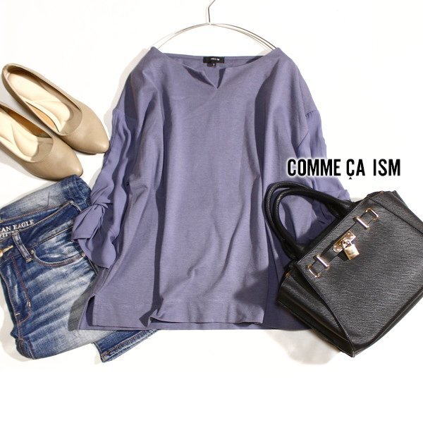 美品 COMME CA ISM コムサイズム ジョーゼット生地切り替え ジャージーストレッチ カットソー 9号 M 春 夏 25C07