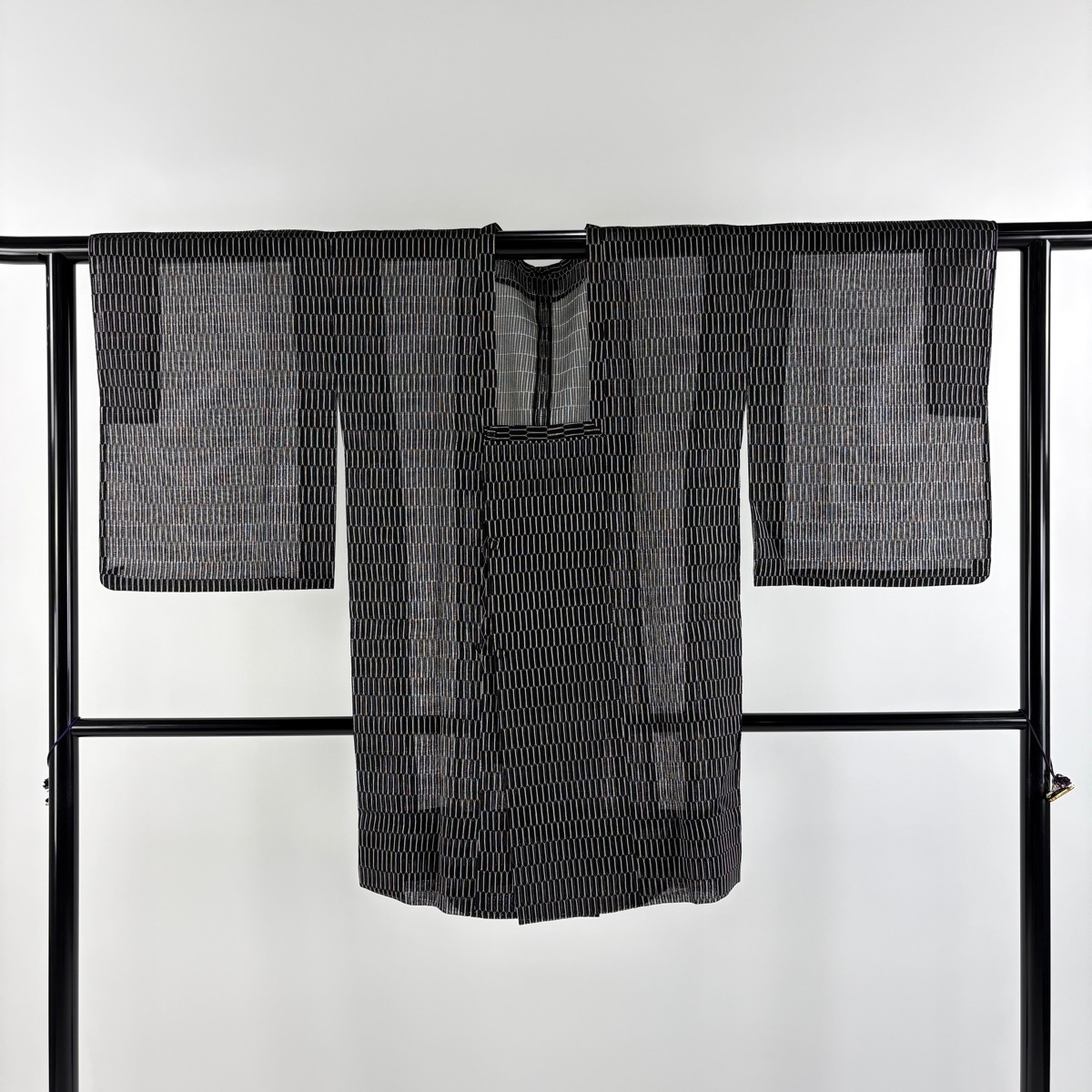| 道行 美品 秀品 和装コート 角衿 幾何学 黒 身丈89 裄丈62 S 正絹 【中古】 |