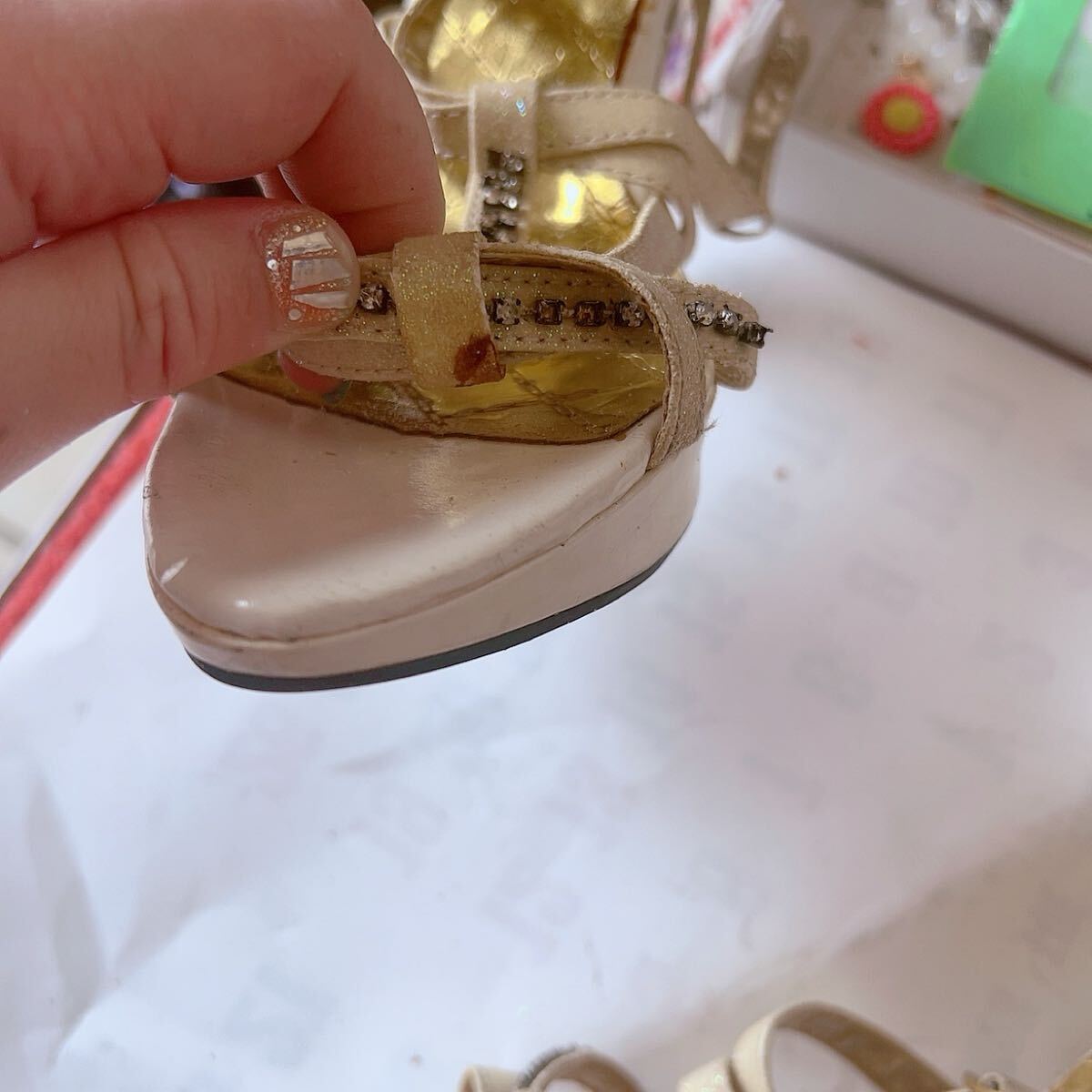 沢山履きました、着用に伴い、ビジューストーンに欠けや剥がれ、ソールに擦り傷が見られます。また、全体的に使用感があります。オフホワイトの色味も、やや黄ばみが見られます。ラメ入りキラキラします^_^