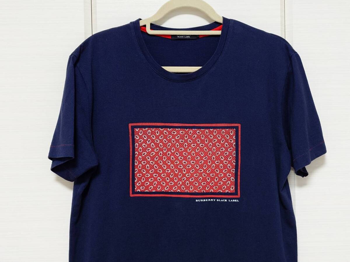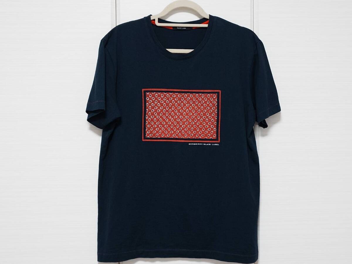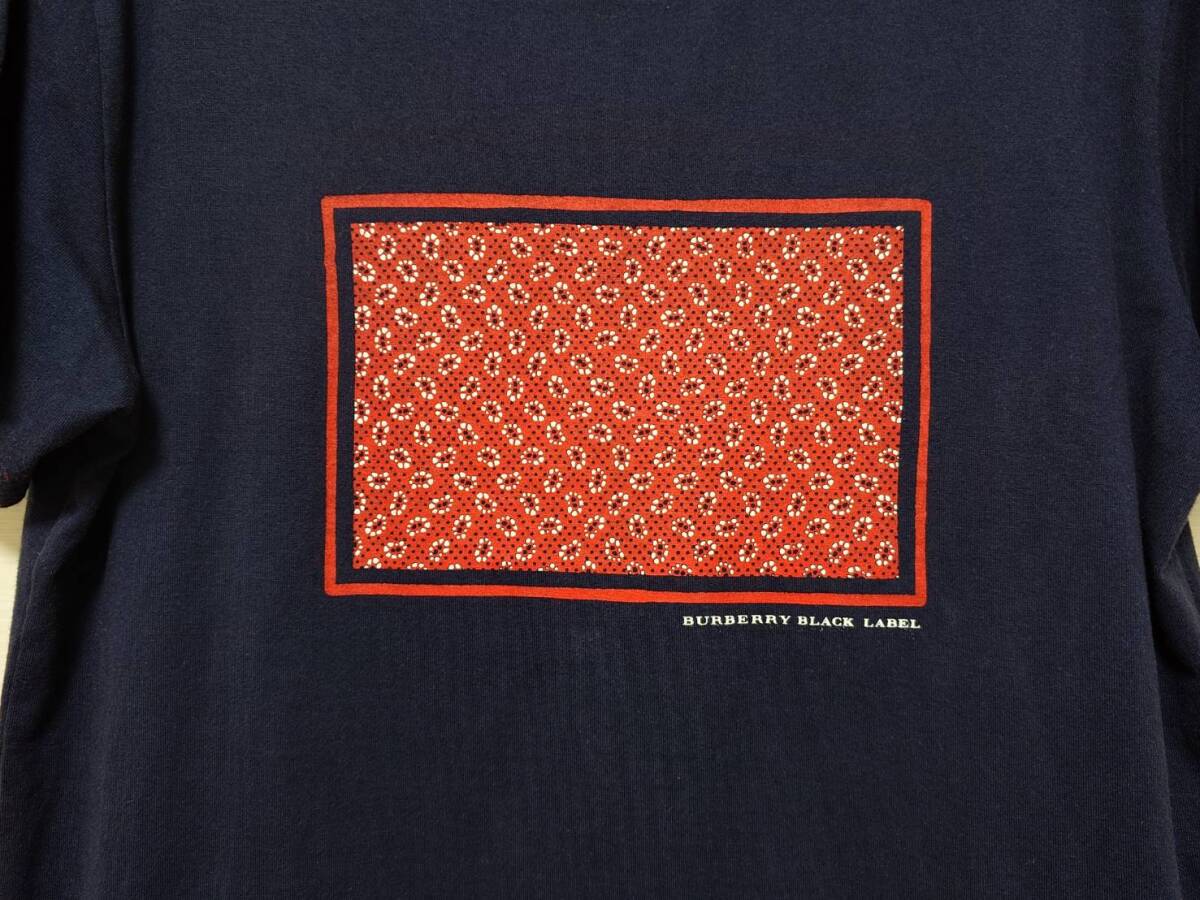 ★美品 国内正規品 バーバリー ブラックレーベル コットンプリントTシャツ 3(L) 紺色★